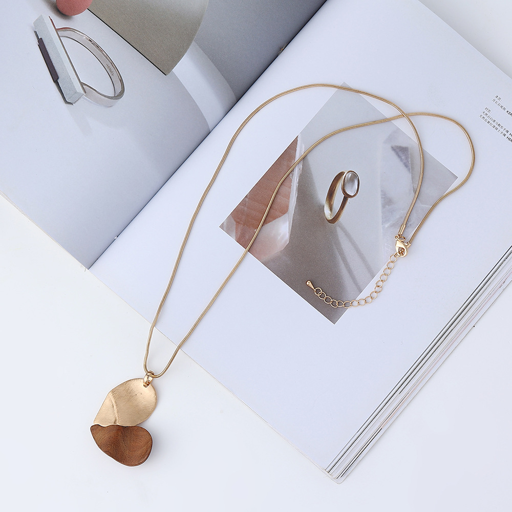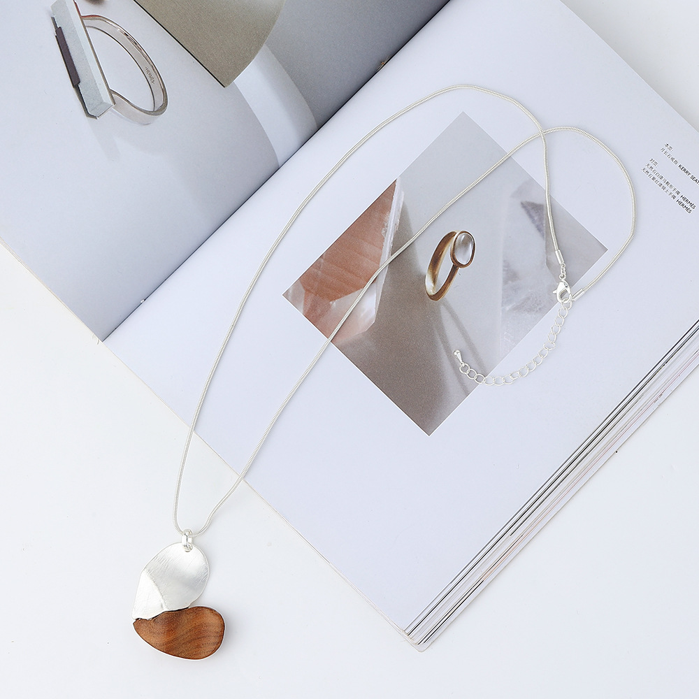 European And American Style Geometric Peach Heart Necklace Wood Lady
