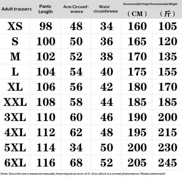 Sizes: XS, S, M, L, XL, XXL, XXXL, 4XL, 5XL, 6XL