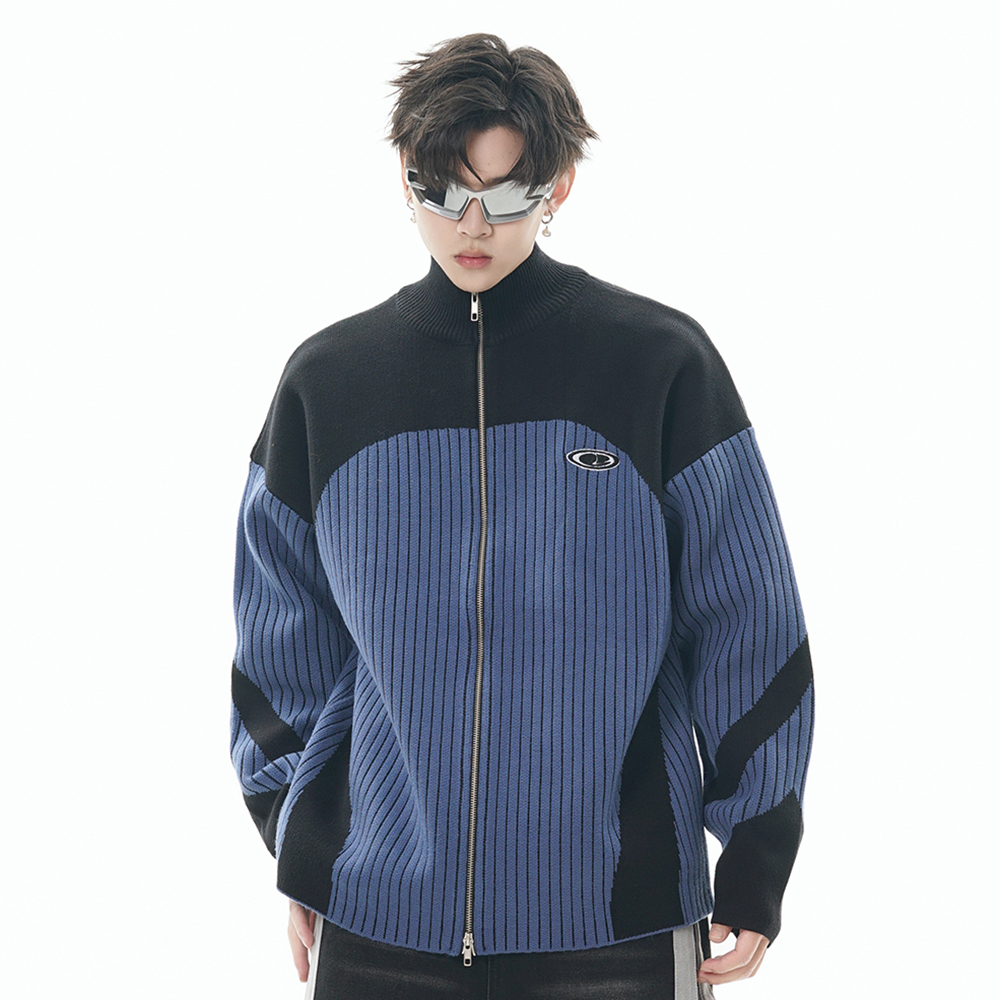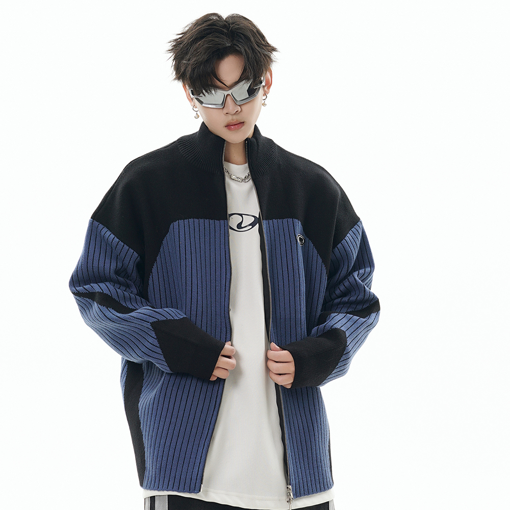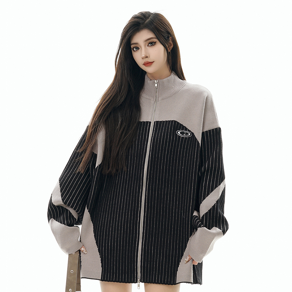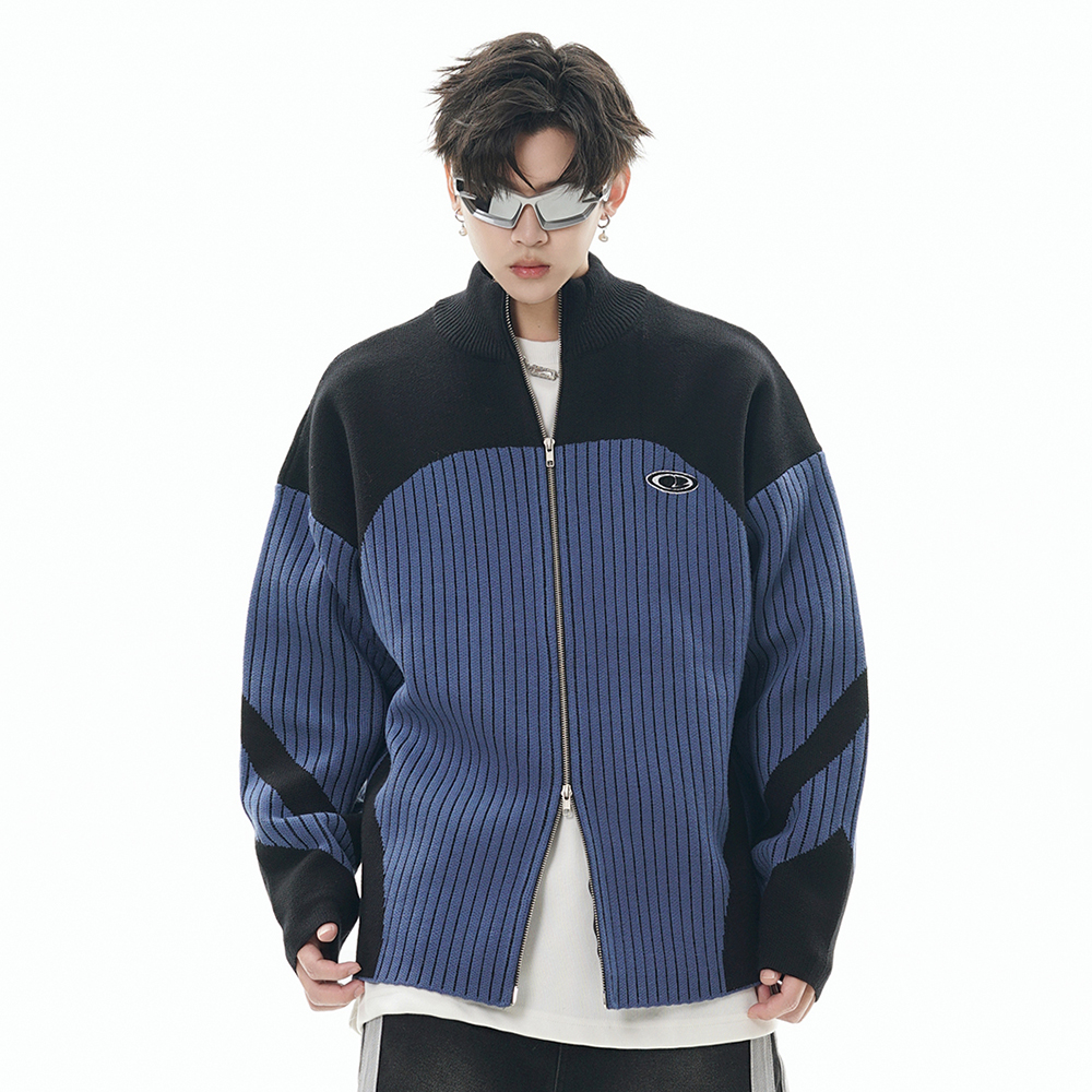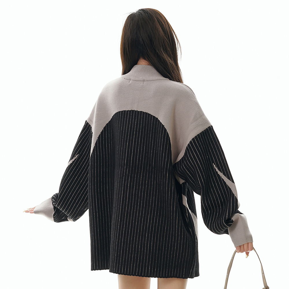 European And American Style Multi-colored Half-turtleneck Two-way Zipper Sweater Coat
