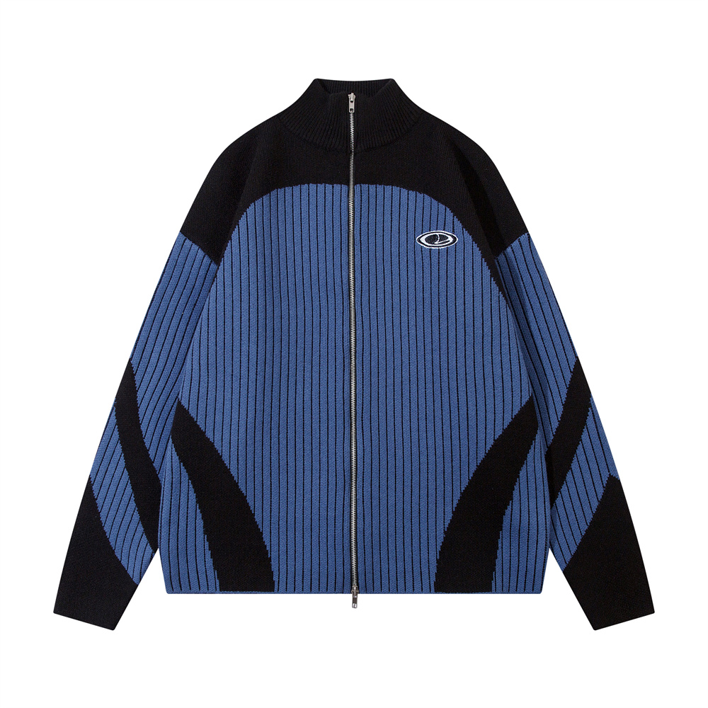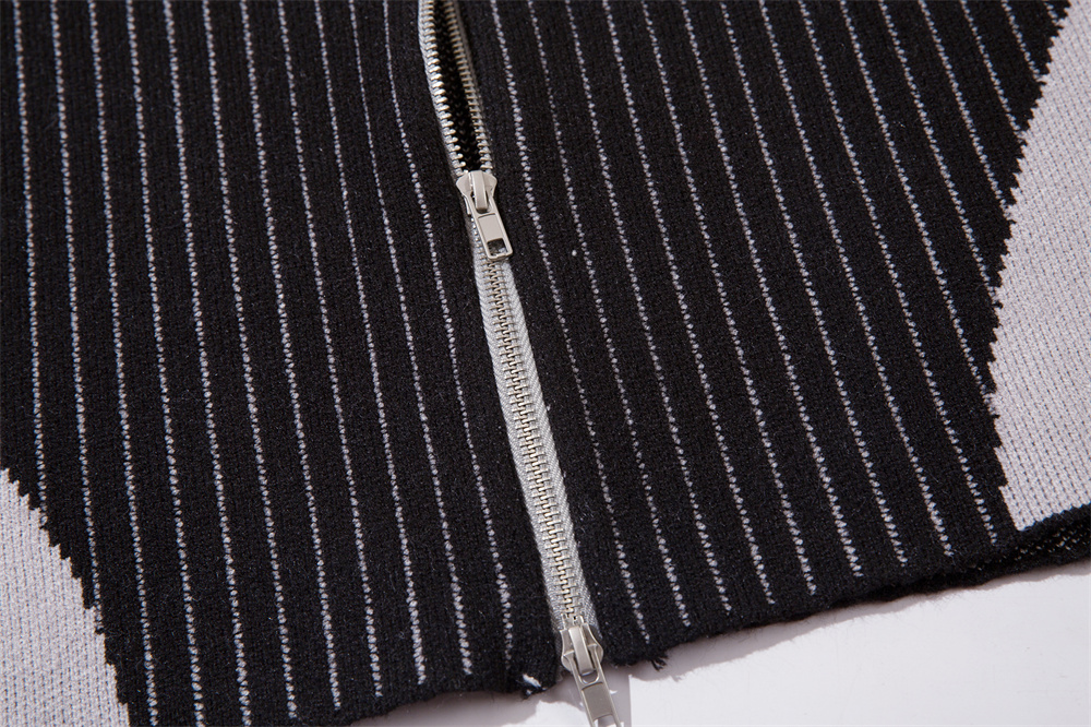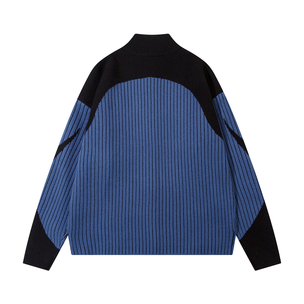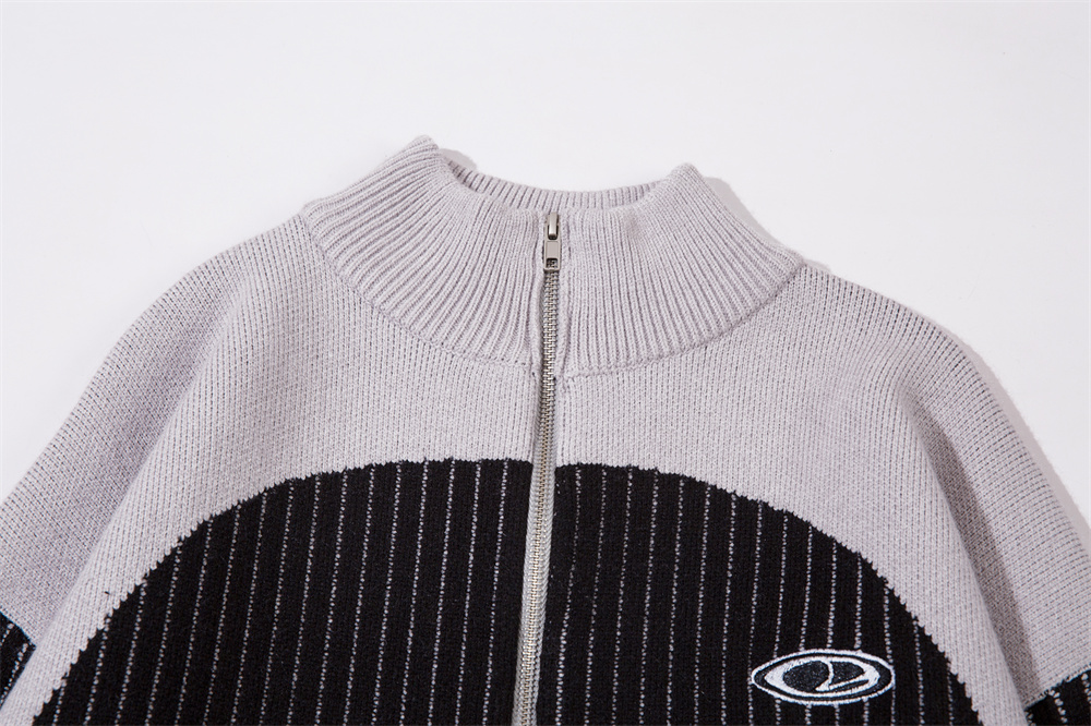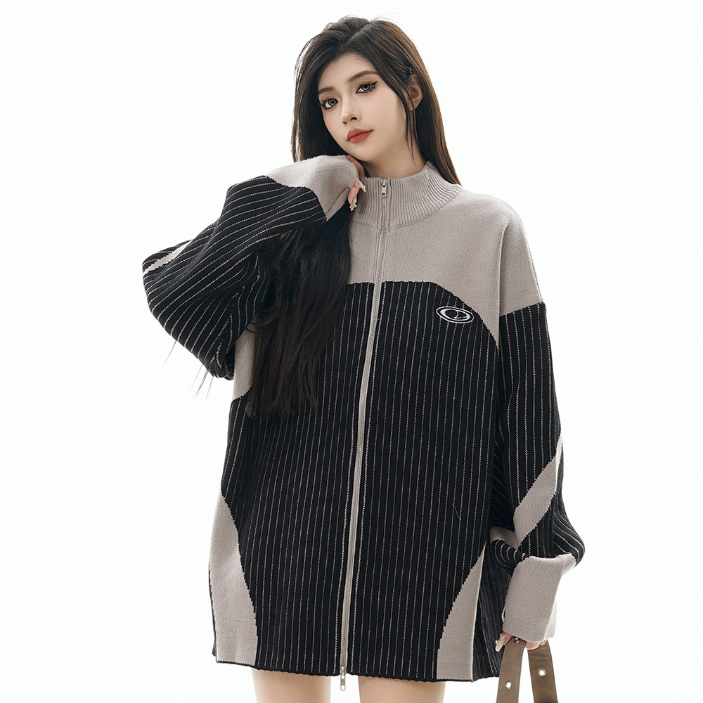 European And American Style Multi-colored Half-turtleneck Two-way Zipper Sweater Coat