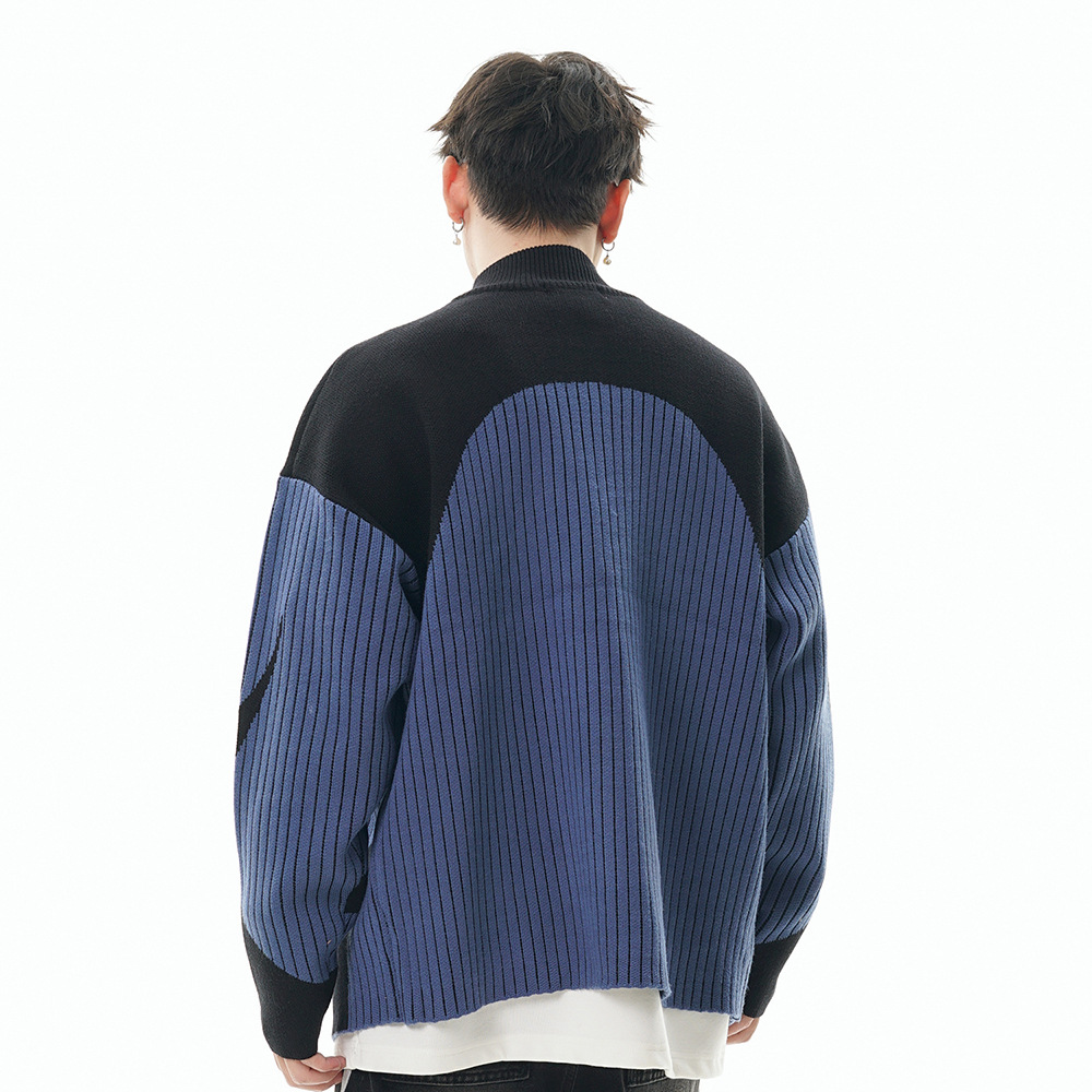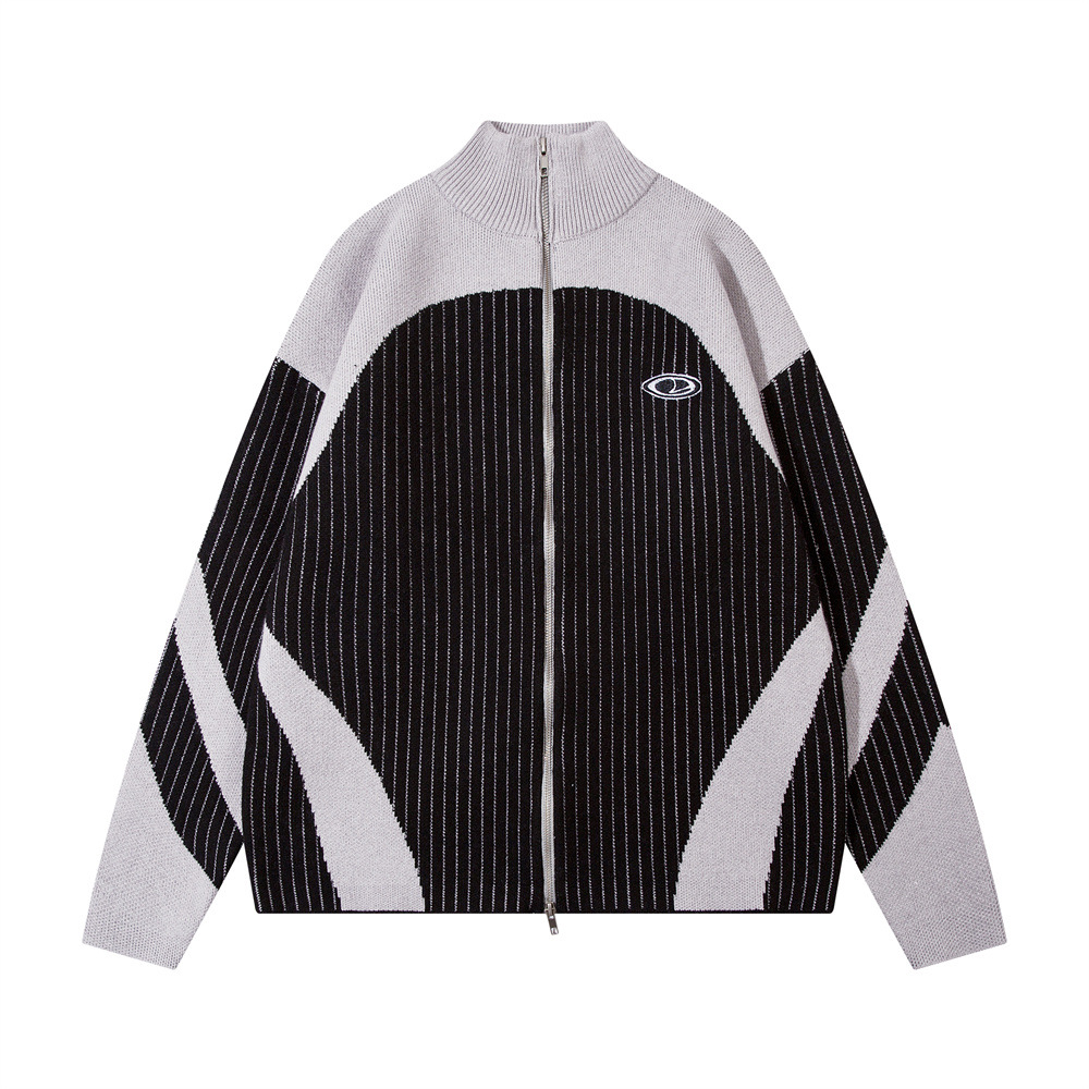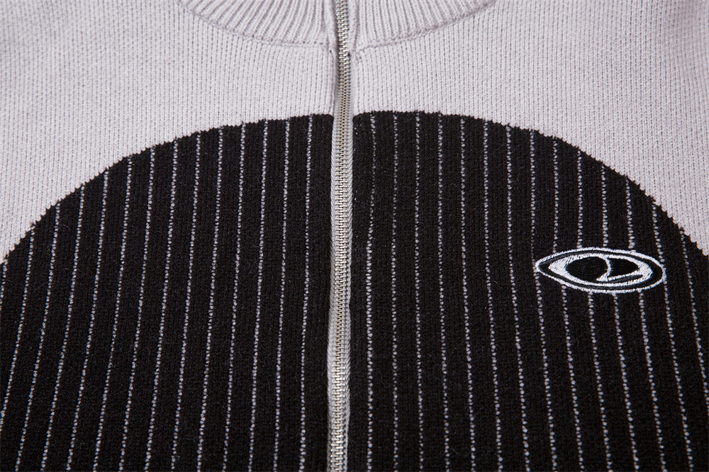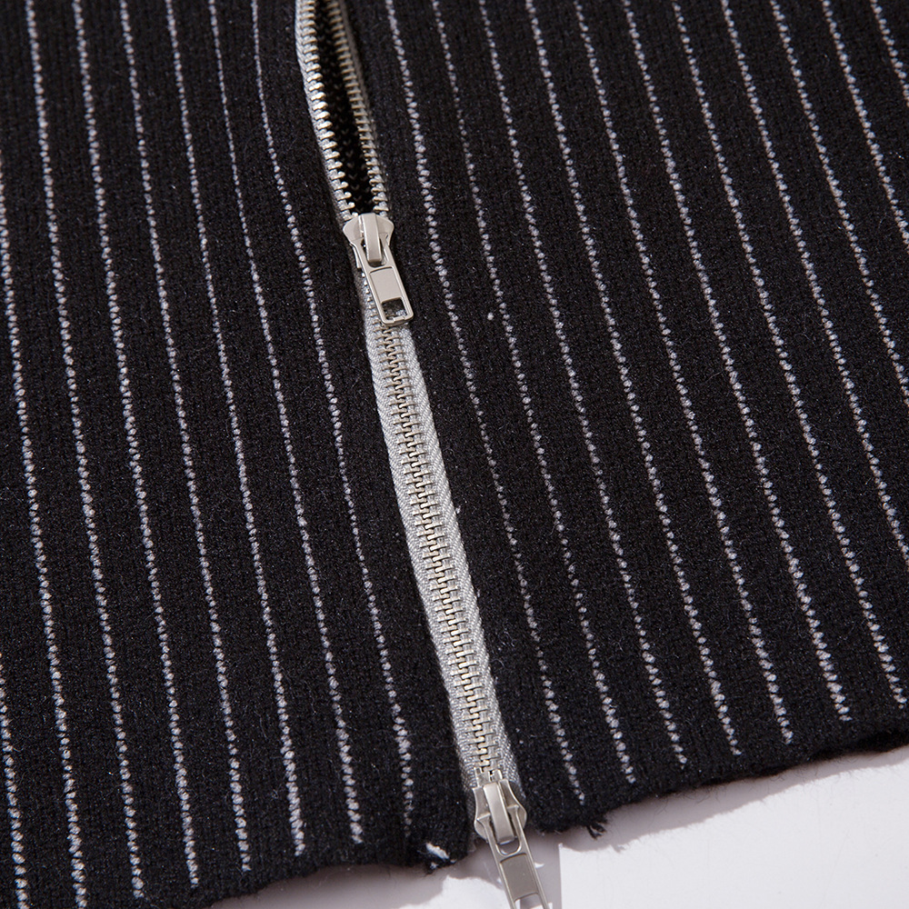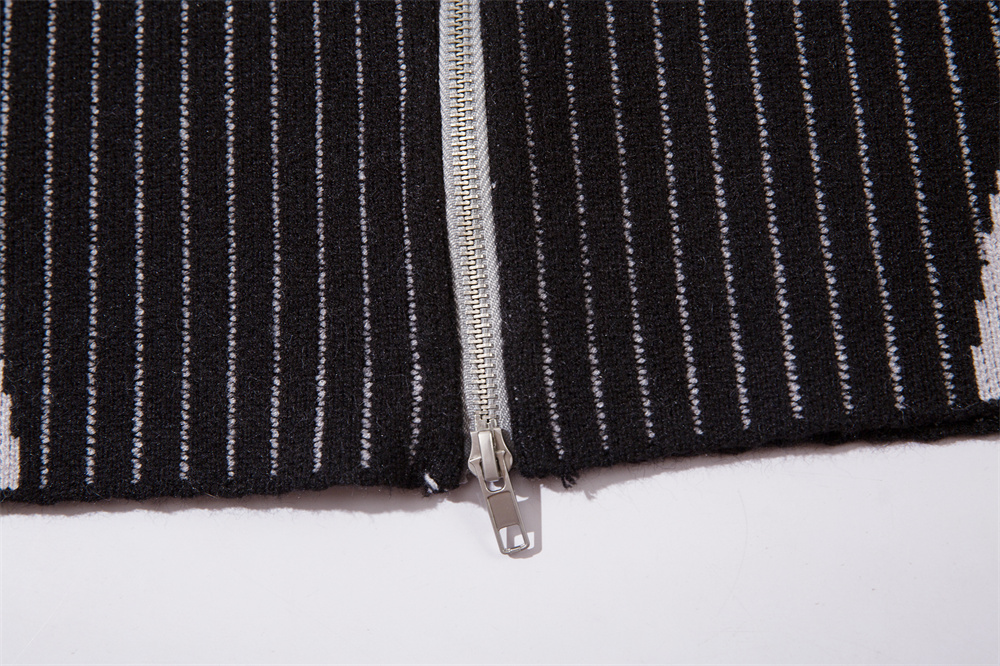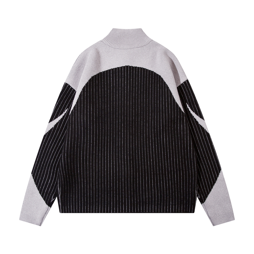 European And American Style Multi-colored Half-turtleneck Two-way Zipper Sweater Coat