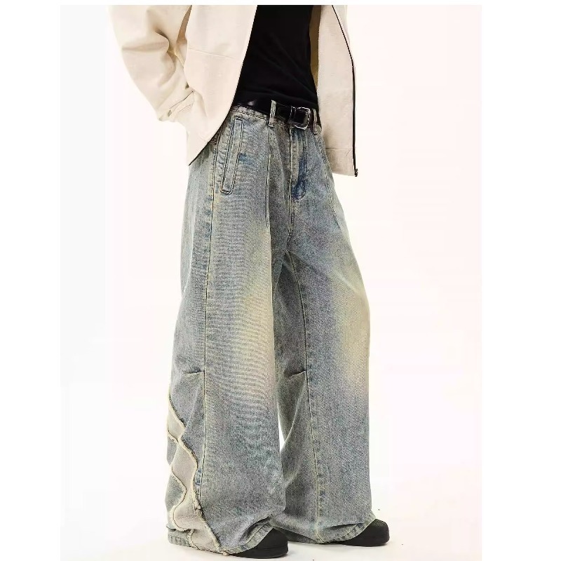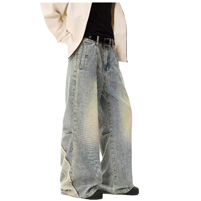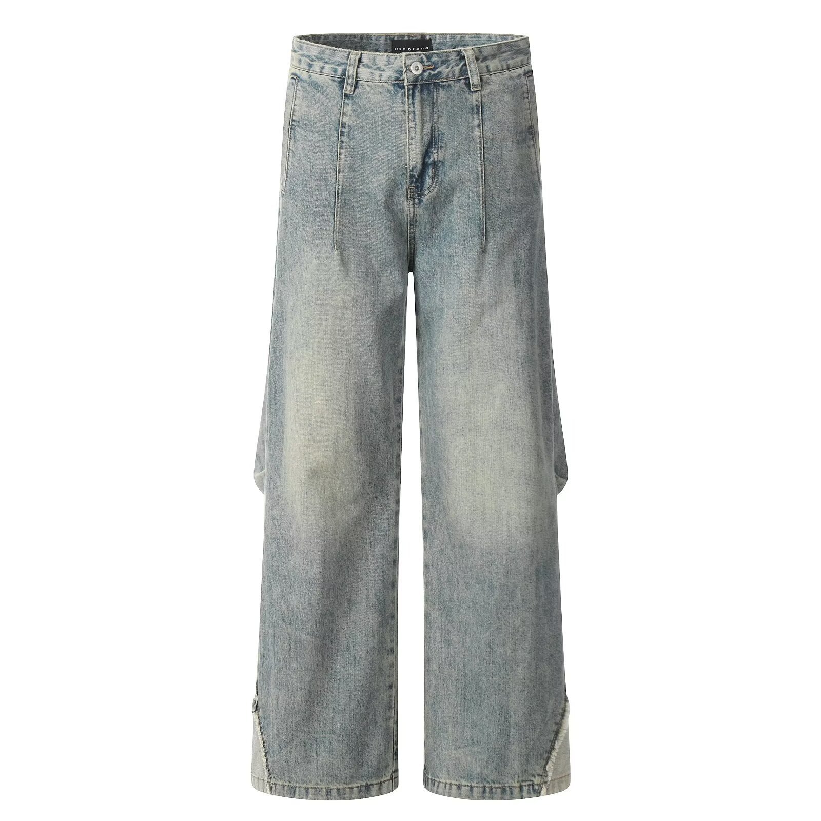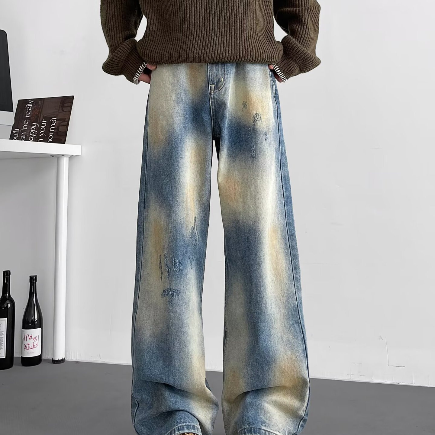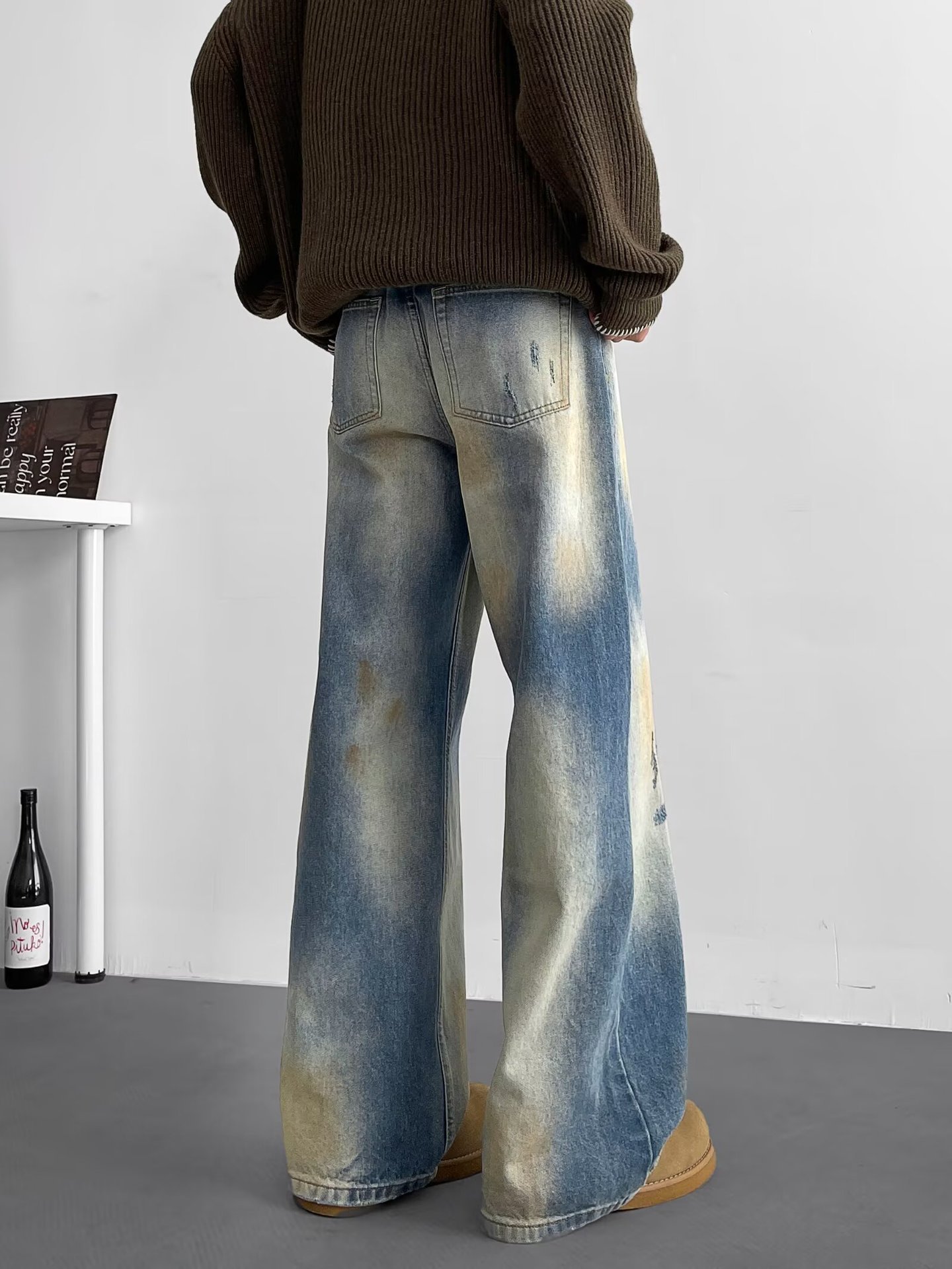 European And American Style Retro Washed Distressed Wide Leg Jeans