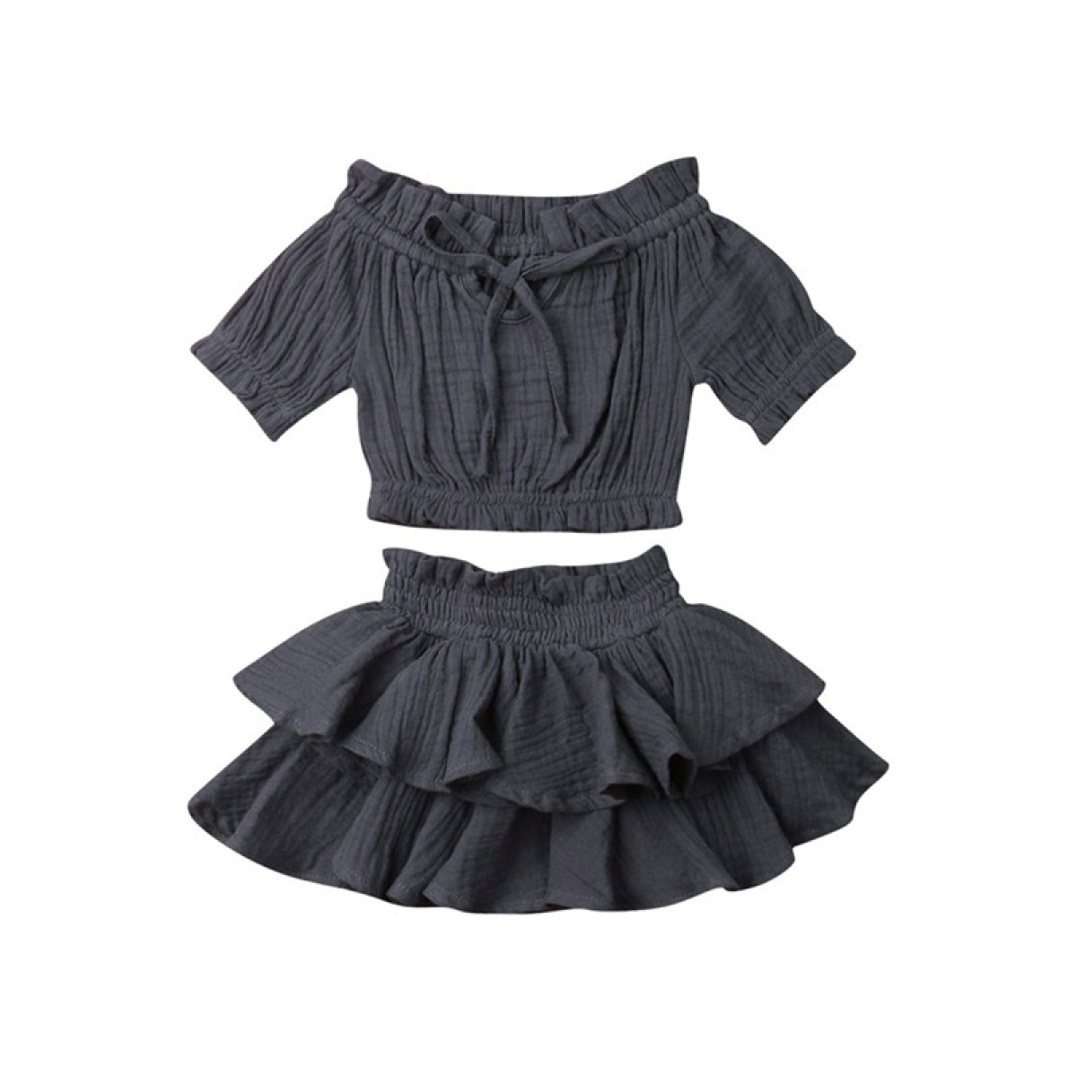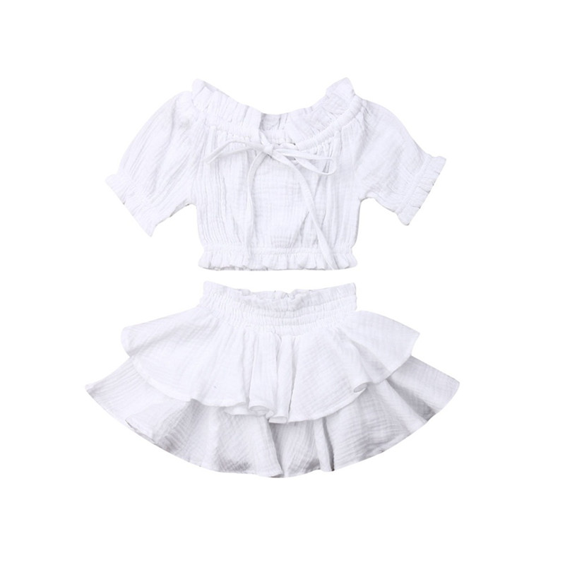 European And American Style Spring And Autumn Children Girls Cotton Tube Top And Double Skirt Suit