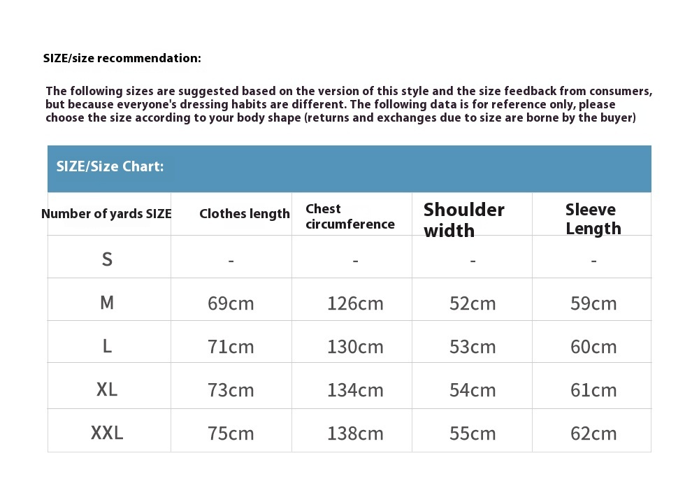 1. Asian sizes are 1 to 2 sizes smaller than European and American people. Choose the larger size if your size between two sizes. Please allow 2-3cm differences due to manual measurement. 2. Please check the size chart carefully before you buy the item, if you don't know how to choose size, please contact our customer service. 3.As you know, the different computers display colors differently, the color of the actual item may vary slightly from the following images.