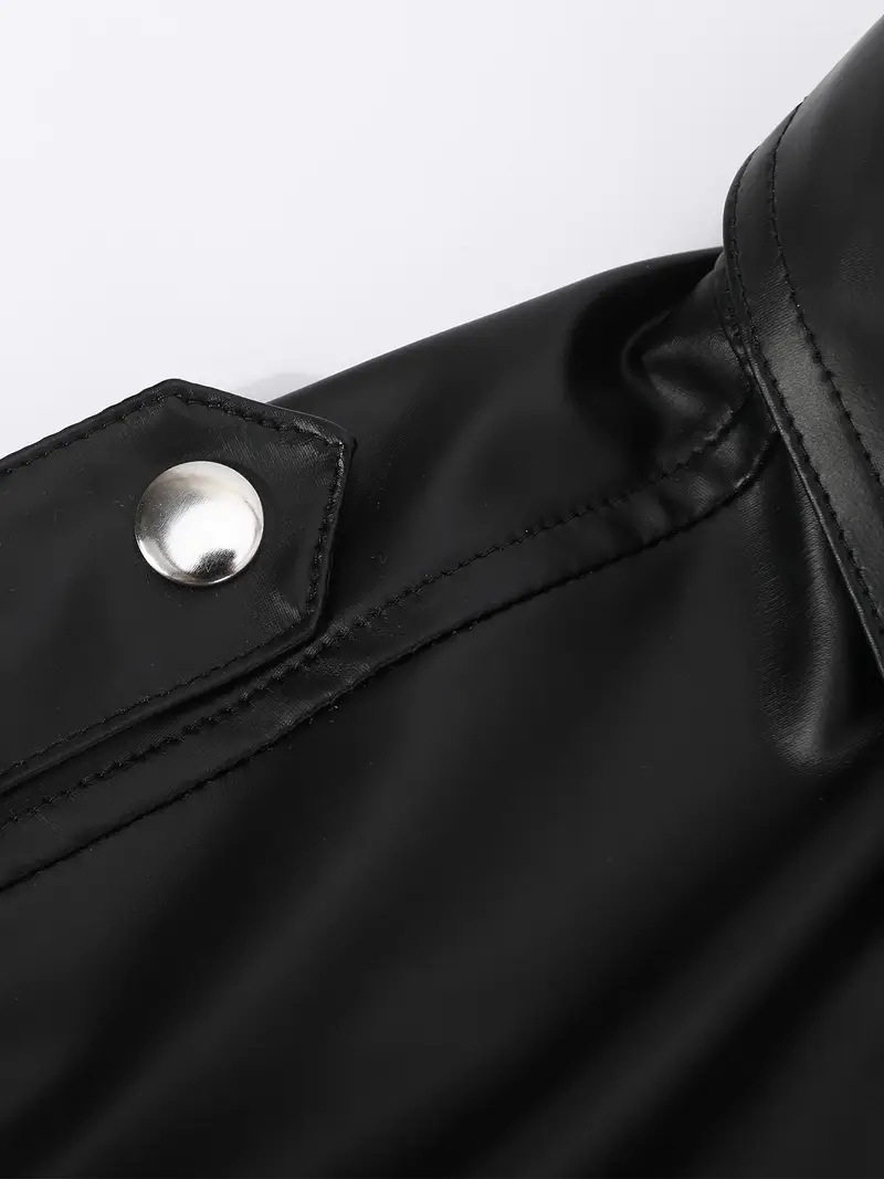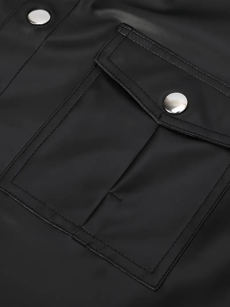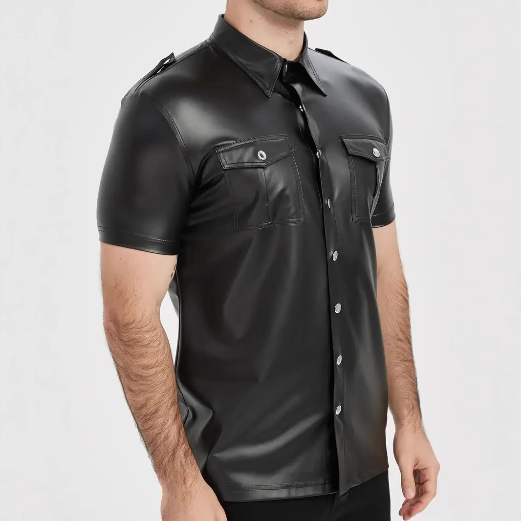 European And American-style Summer Casual Mens Patent Leather Tight-fitting Short-sleeve Top
