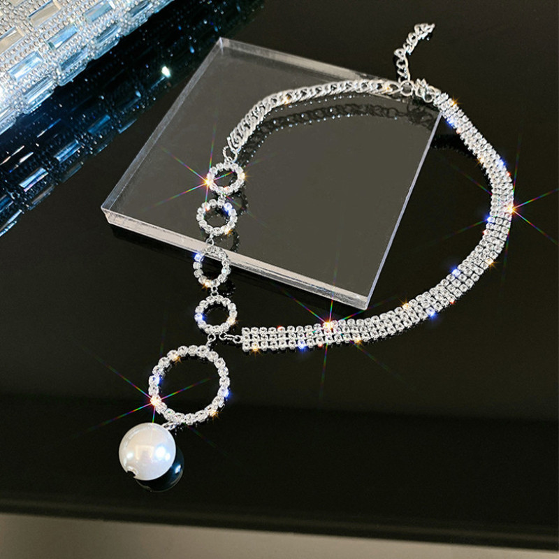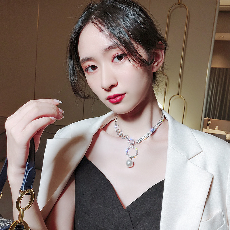 European And American Style Temperament Full Diamond Ring Pearl Necklace