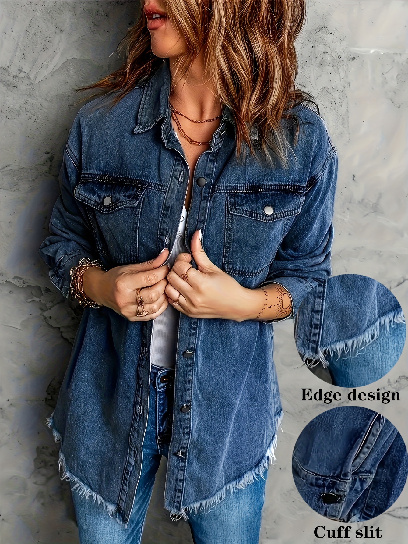 European And American Style Women Retro Washed Denim Jacket Casual With Hem