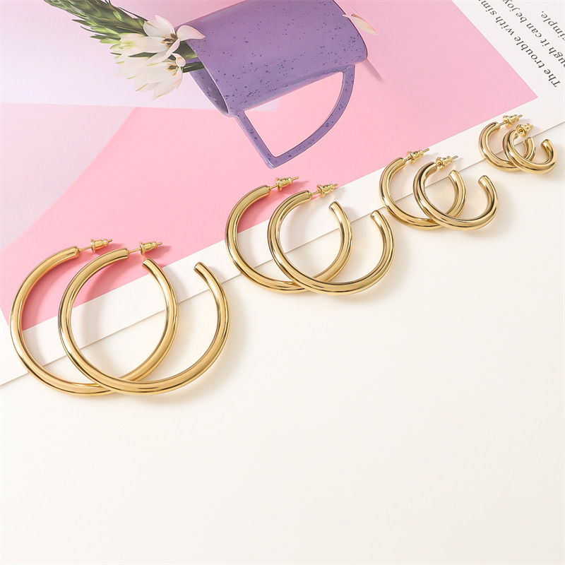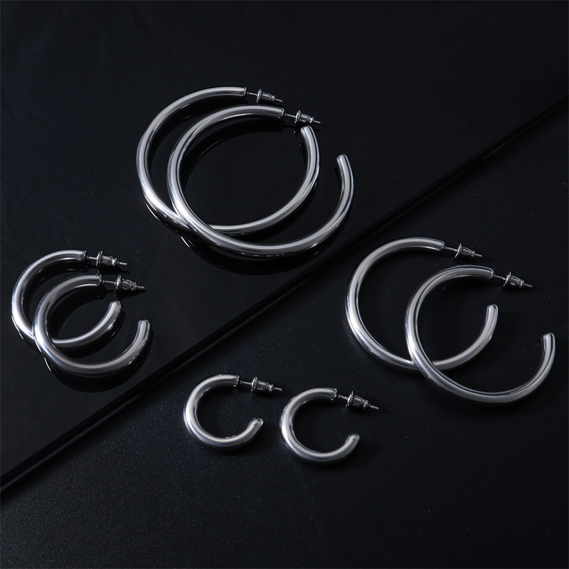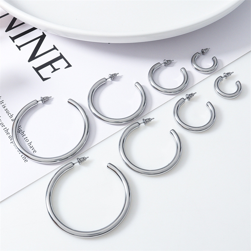 European And American Stylish Round Stainless Steel Earrings