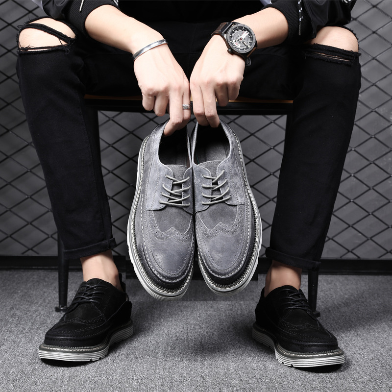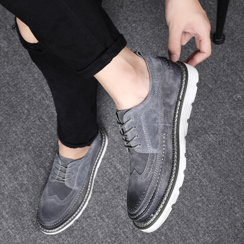 1*Suede brogue leather shoes