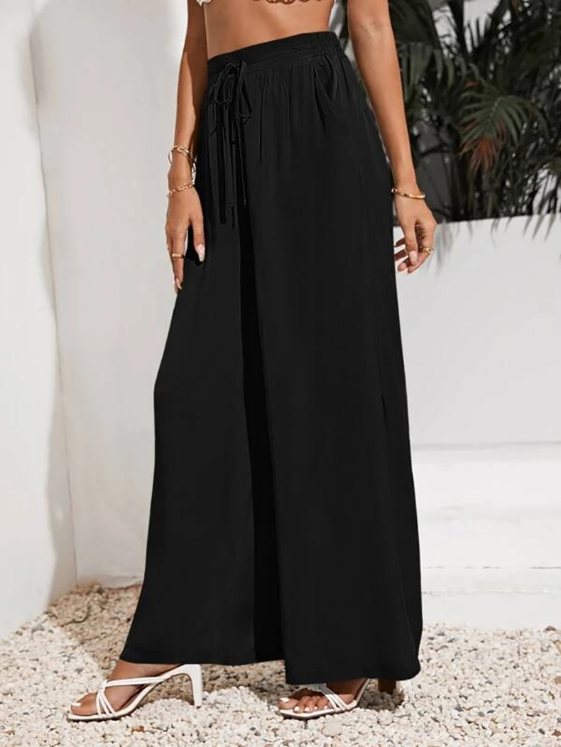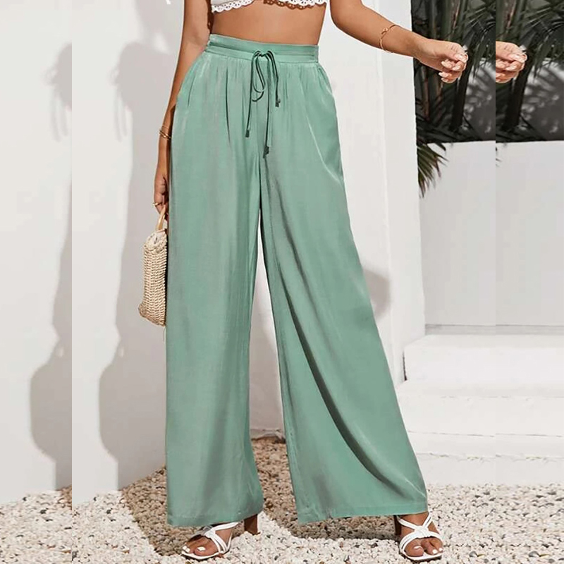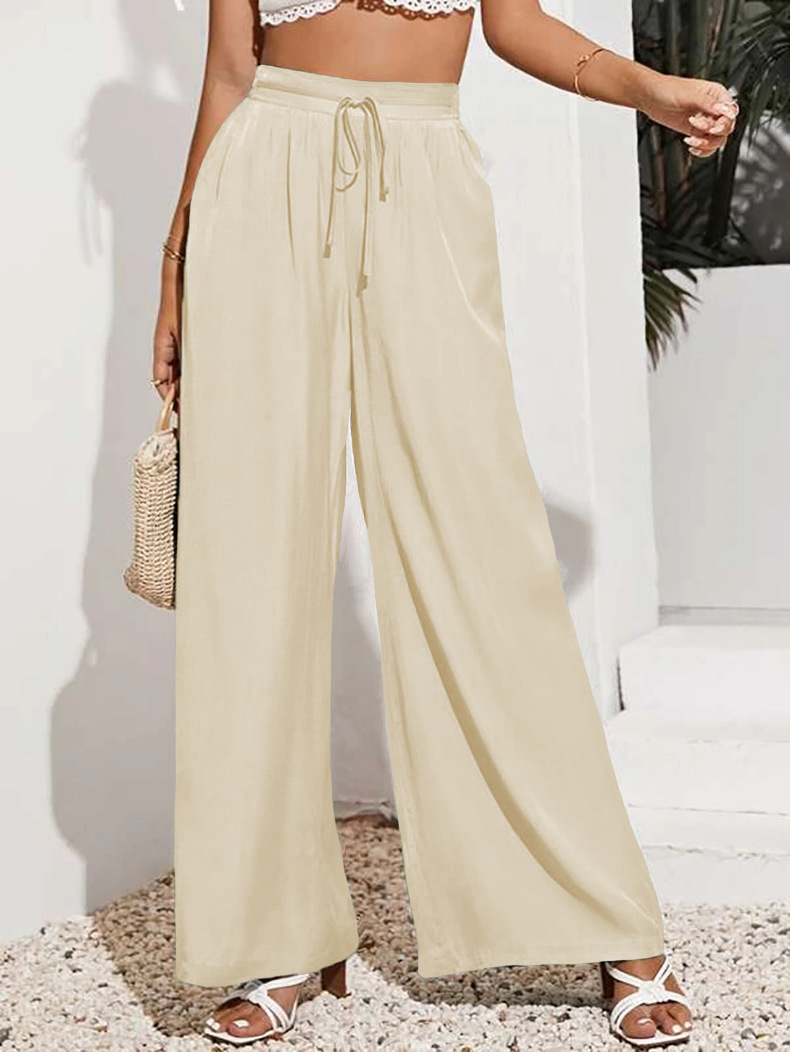 European And American Summer Pure Color Elastic Waist Lace-up Loose Wide-leg Pants
