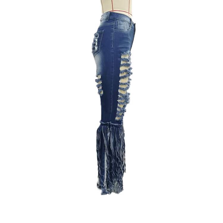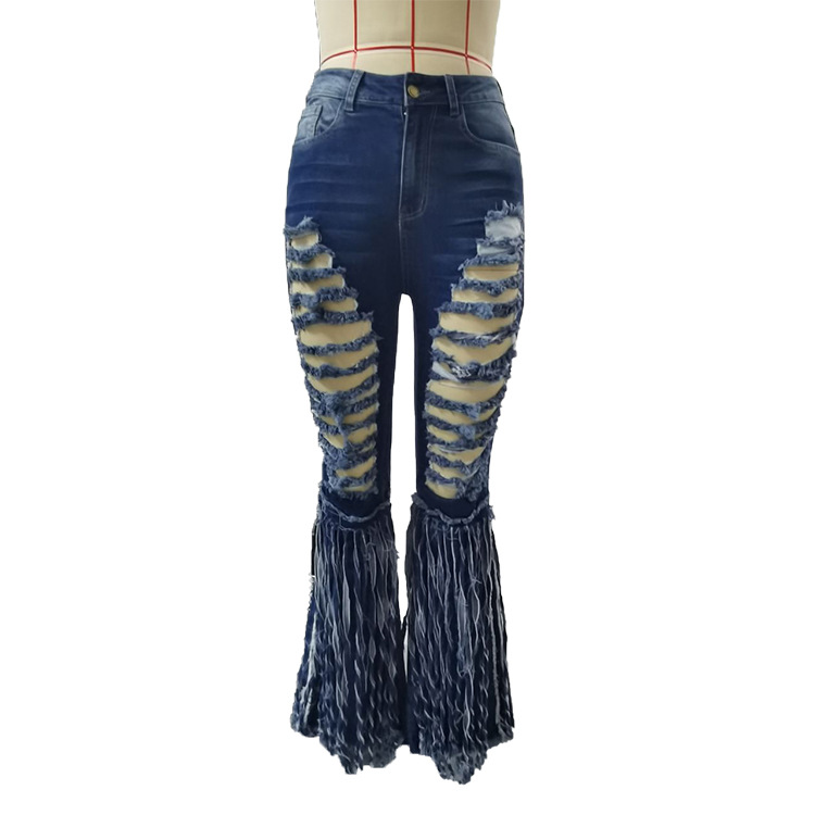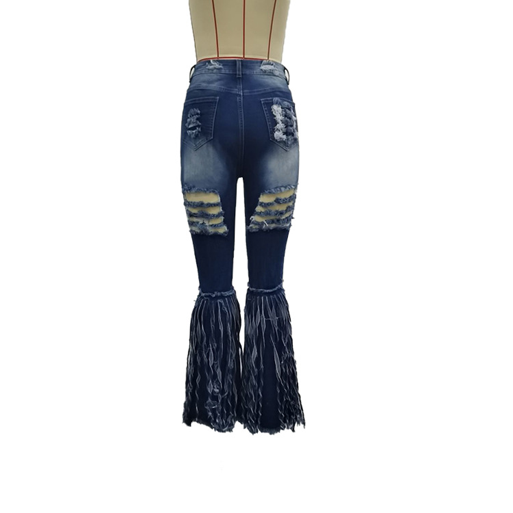 European And American Tassel Brushed Denim Trousers For Women's Casual Flared Trousers