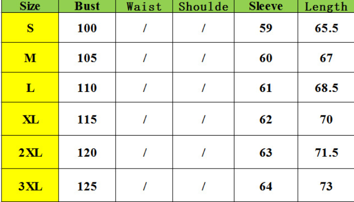 Size: S, M, L, XL, 2XL, 3XL unit: cm
