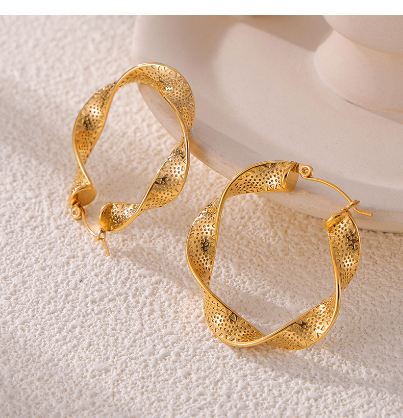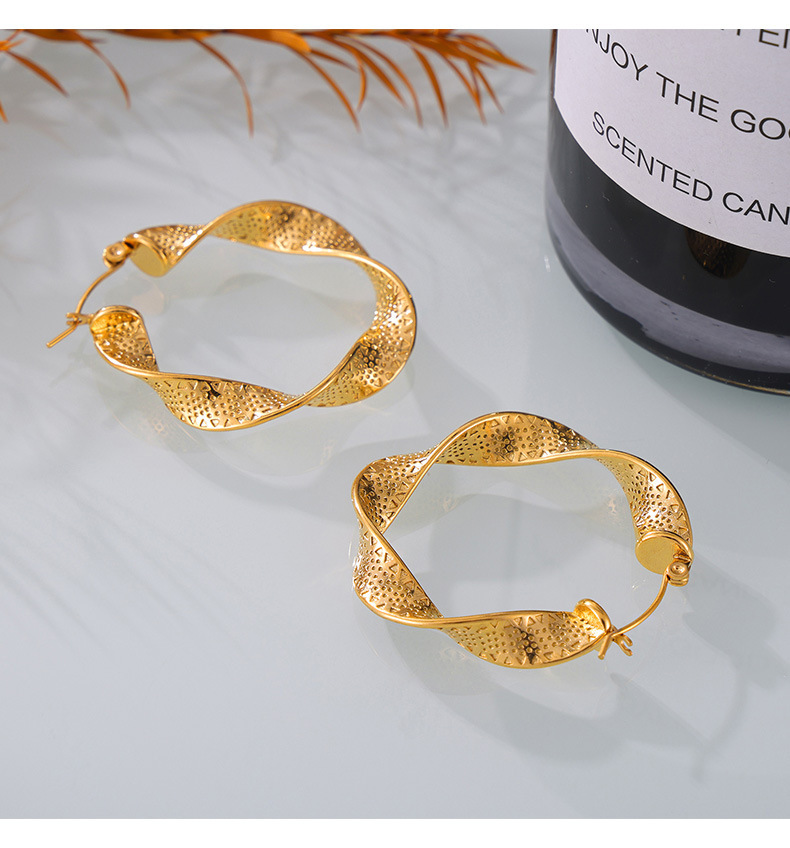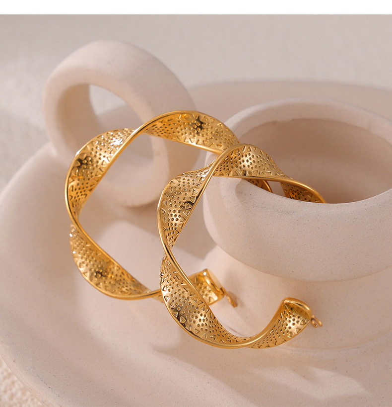 European And American Titanium Steel Metal Texture U-shaped Twisted Earrings