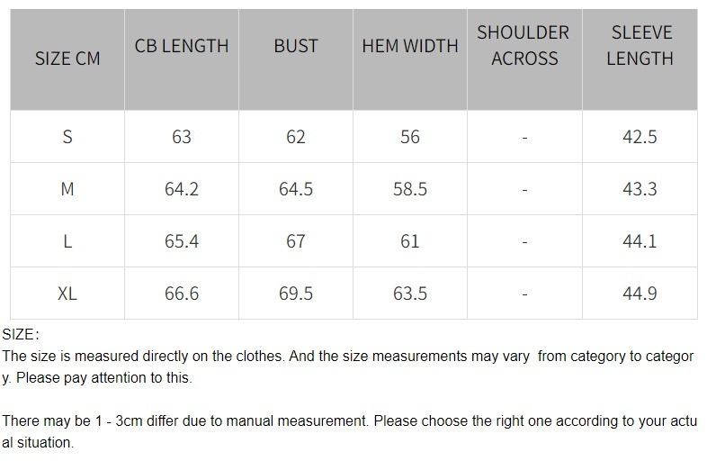 1. Asian sizes are 1 to 2 sizes smaller than European and American people. Choose the larger size if your size between two sizes. Please allow 2-3cm differences due to manual measurement. 2. Please check the size chart carefully before you buy the item, if you don't know how to choose size, please contact our customer service. 3.As you know, the different computers display colors differently, the color of the actual item may vary slightly from the following images.