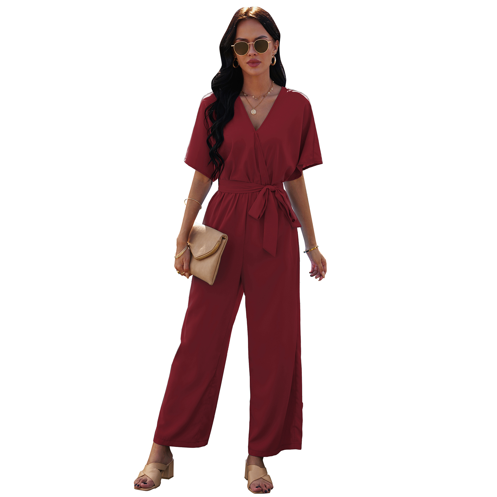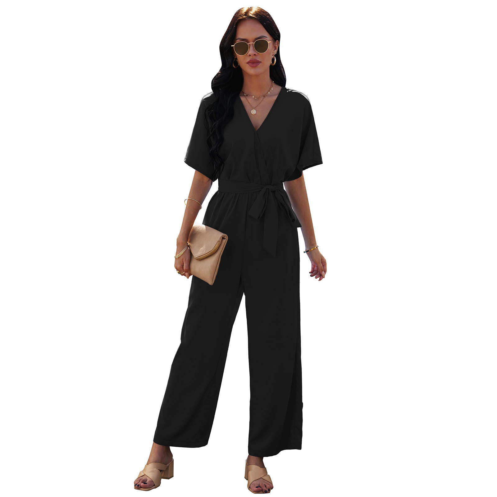 Casual style, V-neck design, short sleeves jumpsuits for women, jumpsuits for women casual.