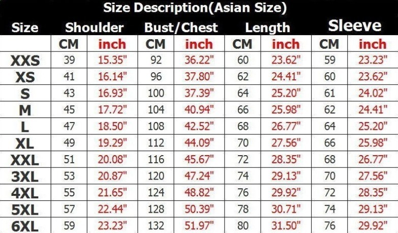 1. Asian sizes are 1 to 2 sizes smaller than European and American people. Choose the larger size if your size between two sizes. Please allow 2-3cm differences due to manual measurement. 2. Please check the size chart carefully before you buy the item, if you don't know how to choose size, please contact our customer service. 3.As you know, the different computers display colors differently, the color of the actual item may vary slightly from the following images.