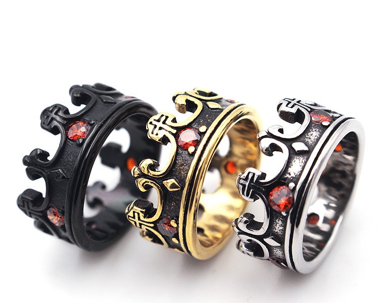 Product description: [Crown Red Diamond Ring] Steel color, black, gold.