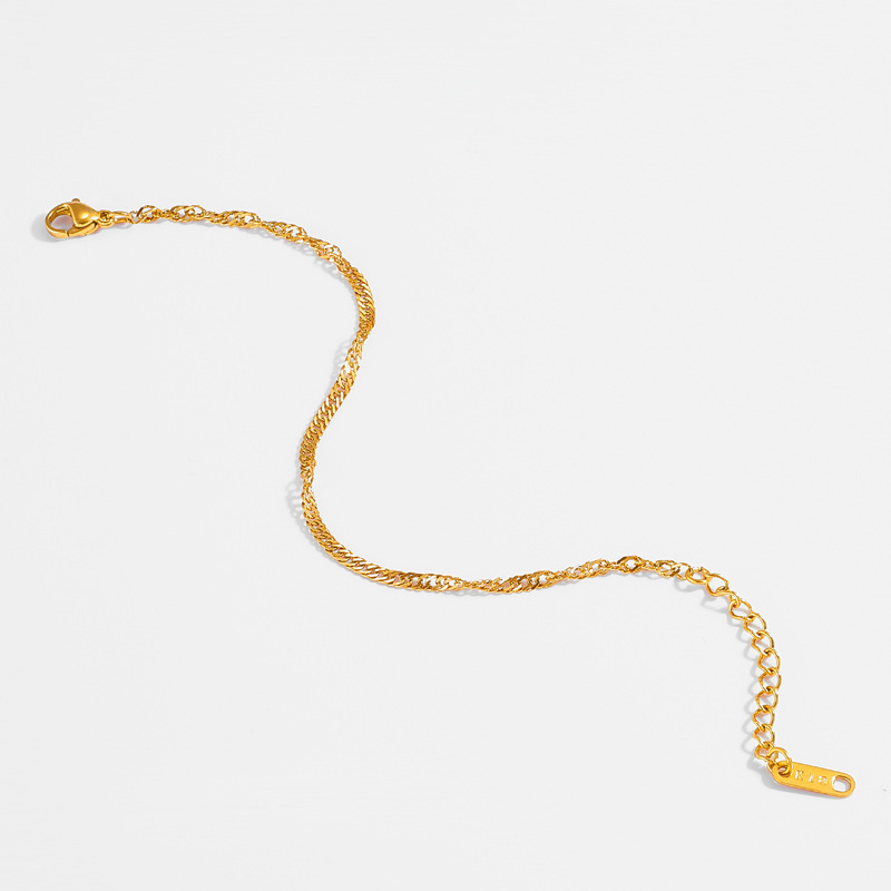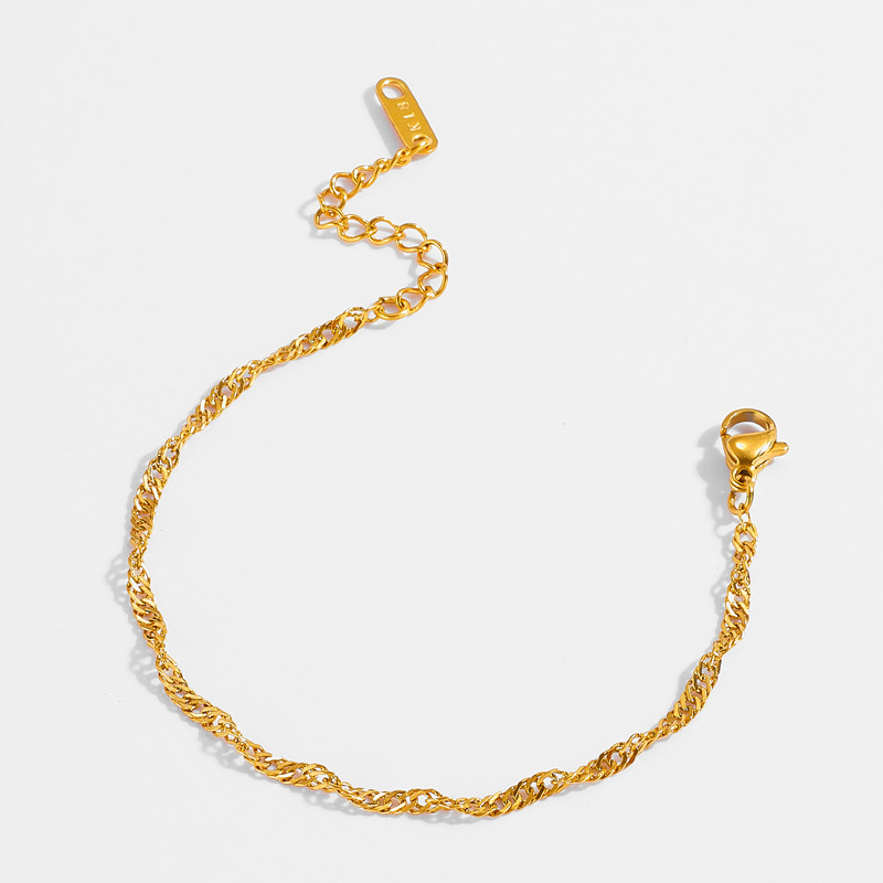 Product information :Material: titanium steelModeling: wavesColor: goldSize Information:Size: 2.5mm*15+3+18kPacking list:Bracelet *1