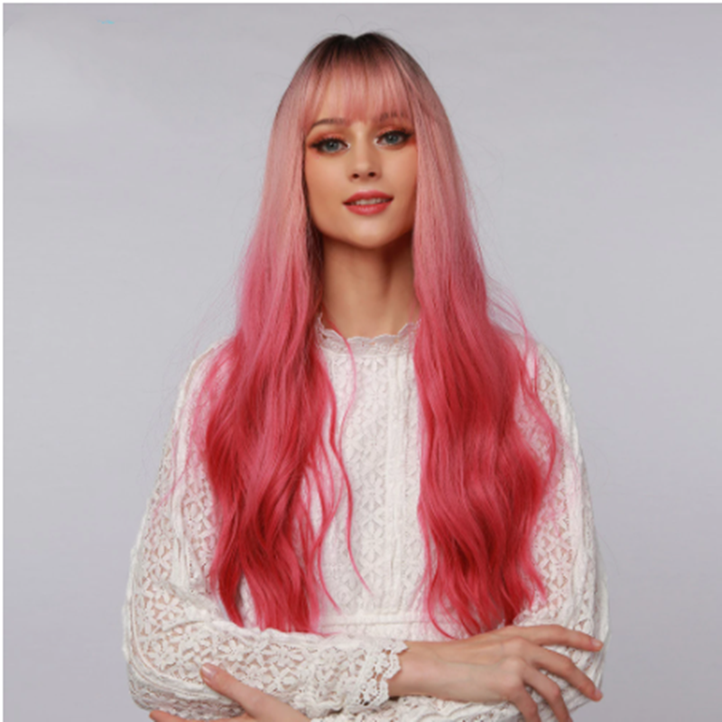 Wig hairstyle: long curly hair with bangs