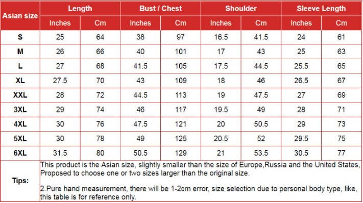 Size: S,M,L,XL,2XL,3XL,4XL,5XL,6XL