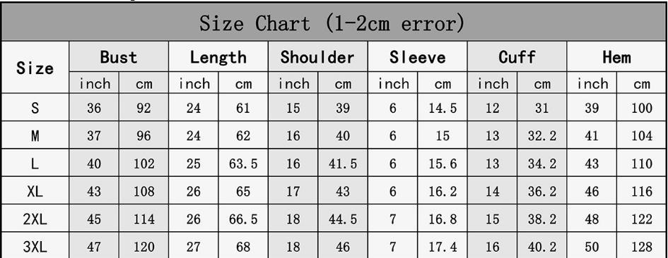 1. Asian sizes are 1 to 2 sizes smaller than European and American people. Choose the larger size if your size between two sizes. Please allow 2-3cm differences due to manual measurement.