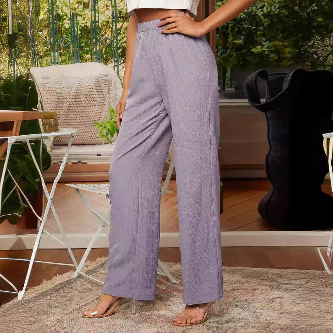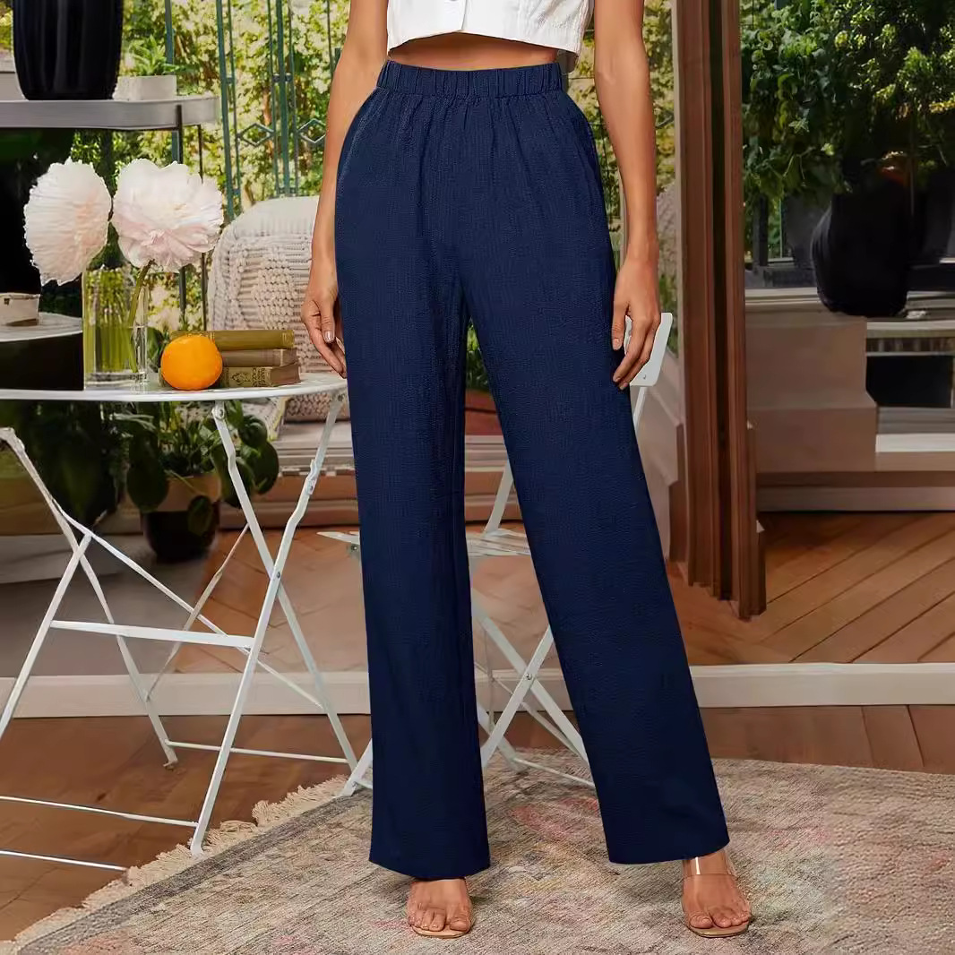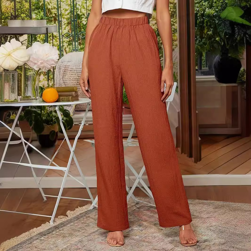 European And American Women's Clothing Elastic Waist Casual Straight Pants Texture Fabric Casual And Comfortable