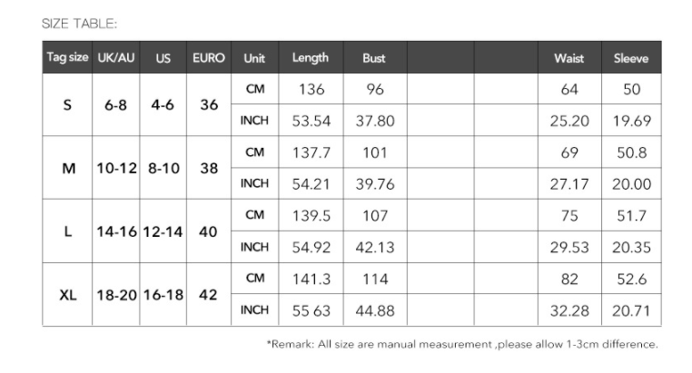 2. Please check the size chart carefully before you buy the item, if you don't know how to choose size, please contact our customer service.