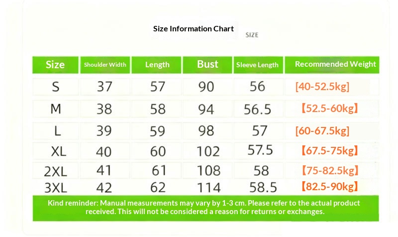 1. Asian sizes are 1 to 2 sizes smaller than European and American people. Choose the larger size if your size between two sizes. Please allow 2-3cm differences due to manual measurement. 2. Please check the size chart carefully before you buy the item, if you don't know how to choose size, please contact our customer service. 3.As you know, the different computers display colors differently, the color of the actual item may vary slightly from the following images.