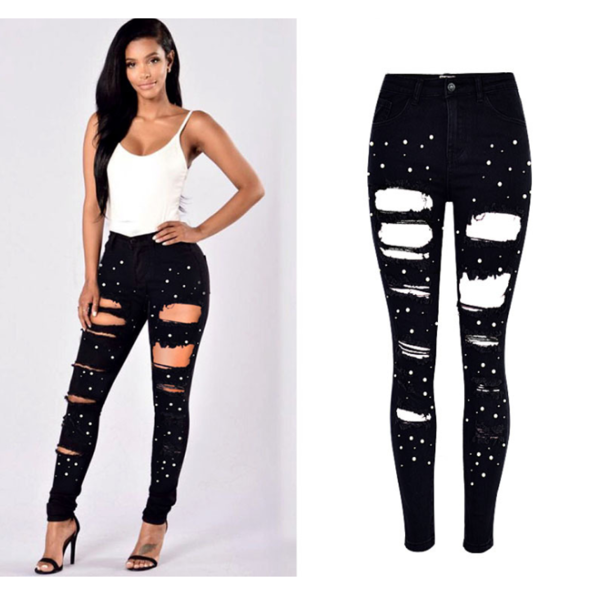 Fabric Name Cotton Cowboy (0.37-0.47KG) Main fabric component Cotton Main fabric component content 81%-90% Style Pencil pants/trousers Pants length trousers waist high waist denim color dark Style Europe and America Thick and ordinary Common pop elements Pattern, beaded, hand-broken, button, zipper, washed, two-tone pearl, stud, black and white Year of listing / season 2018 spring color black size 34 = domestic S, foreign XS, 36 = domestic M, foreign S, 38 = domestic L, foreign M, 40 = domestic XL, foreign L, 42 = domestic 2XL, foreign XL, 44 = domestic 3XL, foreign 2XL