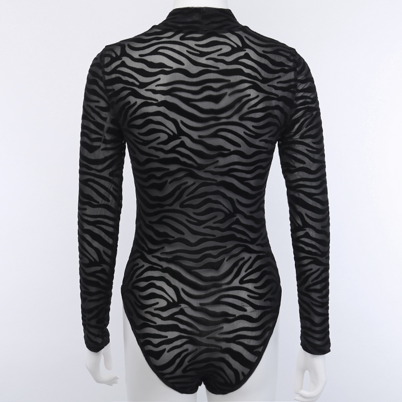 European And American Women's Irregular Striped Blouse, Autumn And Winter Fashion Sexy See-Through Long-Sleeved Slim Casual Bottoming Bodysuit