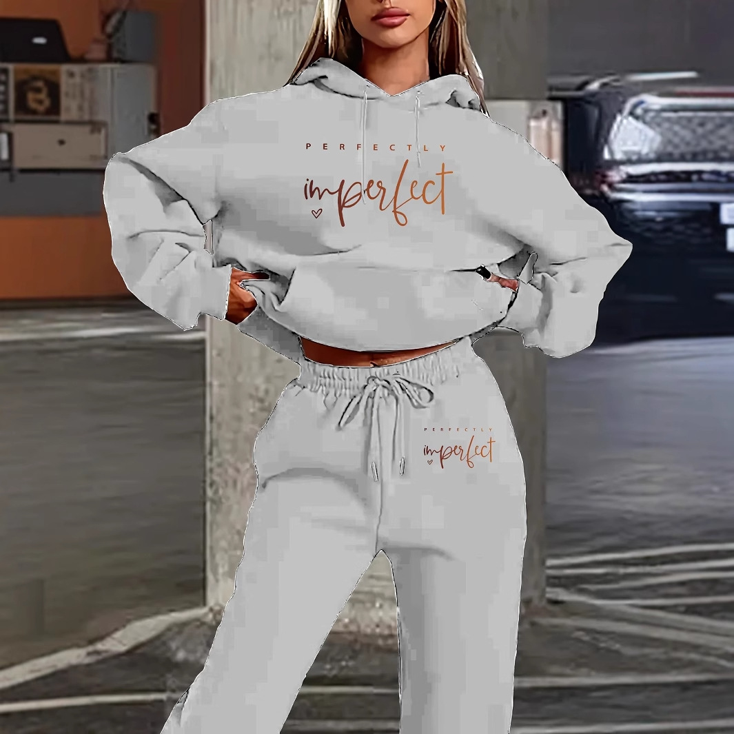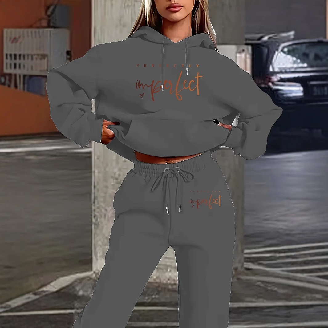 European And American Women's Letter Print Hooded Sweatshirt Fashion Casual Pants Set