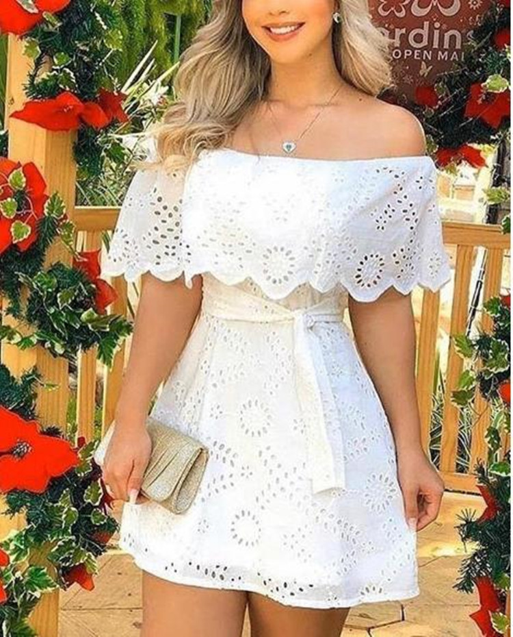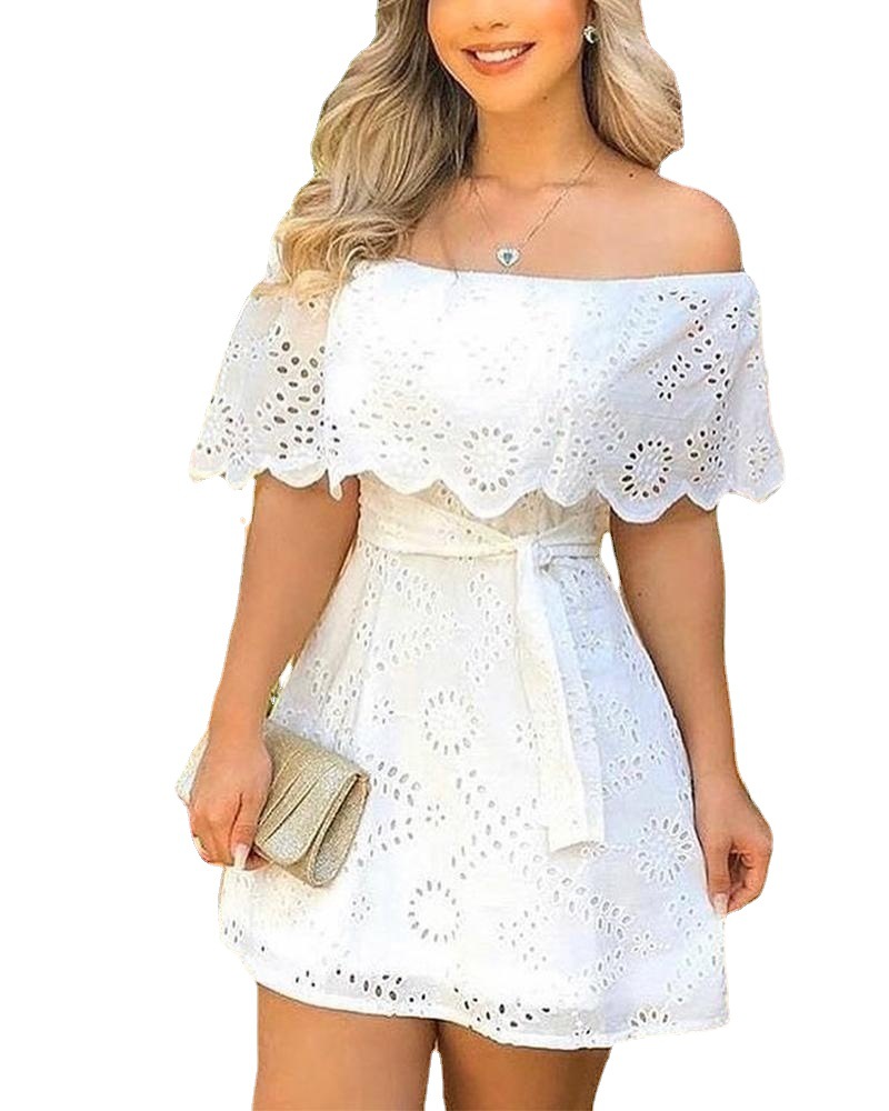 European And American Women's New White Temperament Short One-shoulder Waist Tie Dress