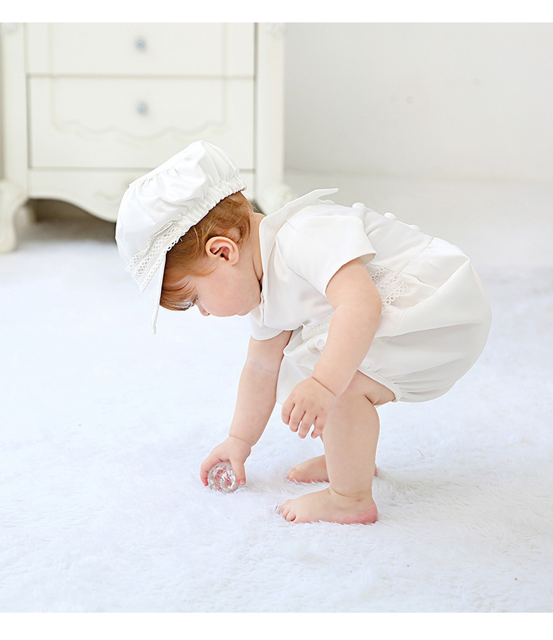 European Baptism Dress Newborn Baby Year Old Full Moon Hat Dress Suit