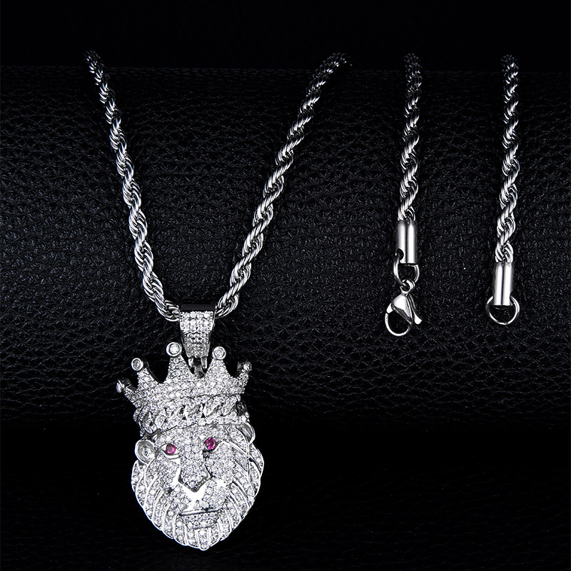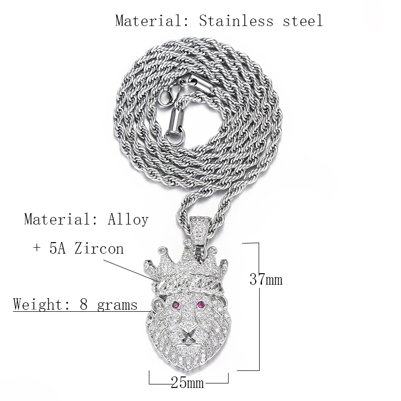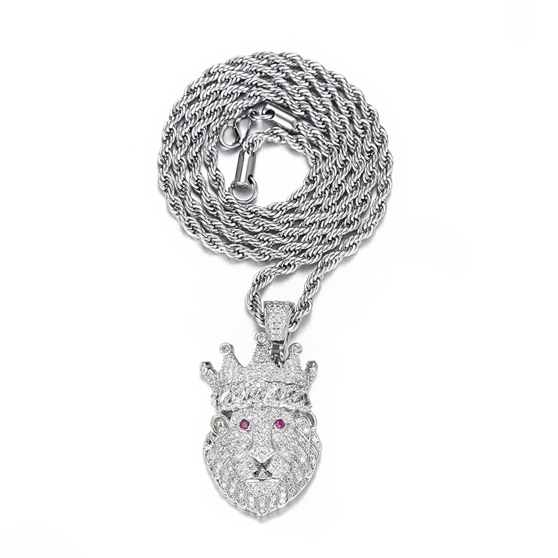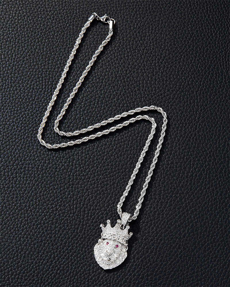 European Hip Hop Crown Zircon Pendant Electroplated Crown Necklace Combination Full Diamond