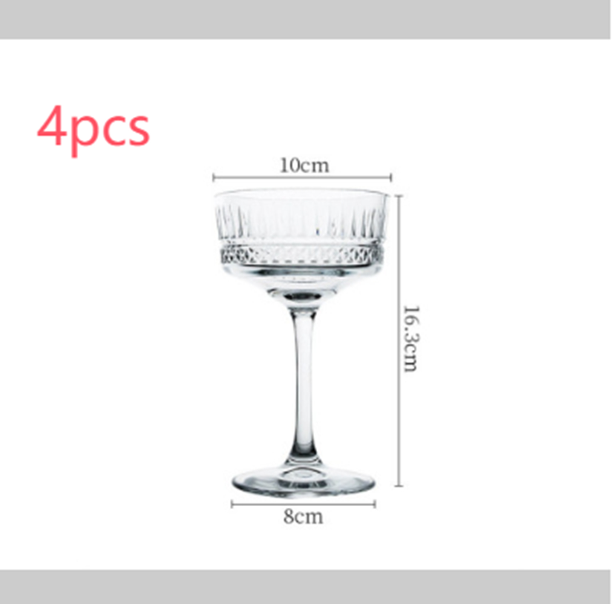 The popular and petty bourgeoisie elements are contained in the elegant shape of the glass, which can be used as a champagne, cocktail glass, or as a dessert cup~