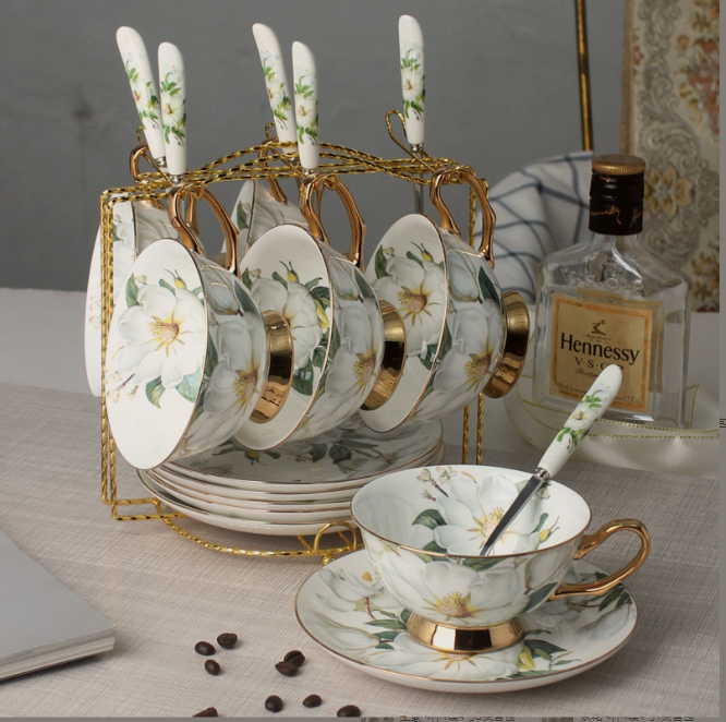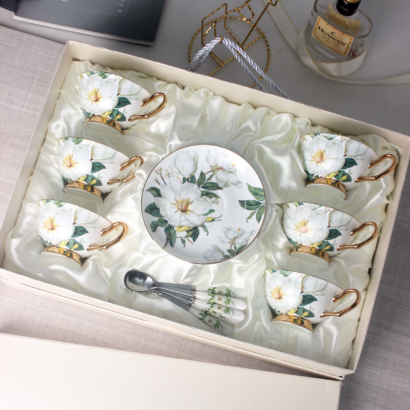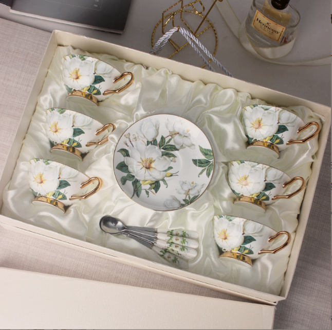 A: Camellia 6 cups 6 saucers 6 spoons gift box