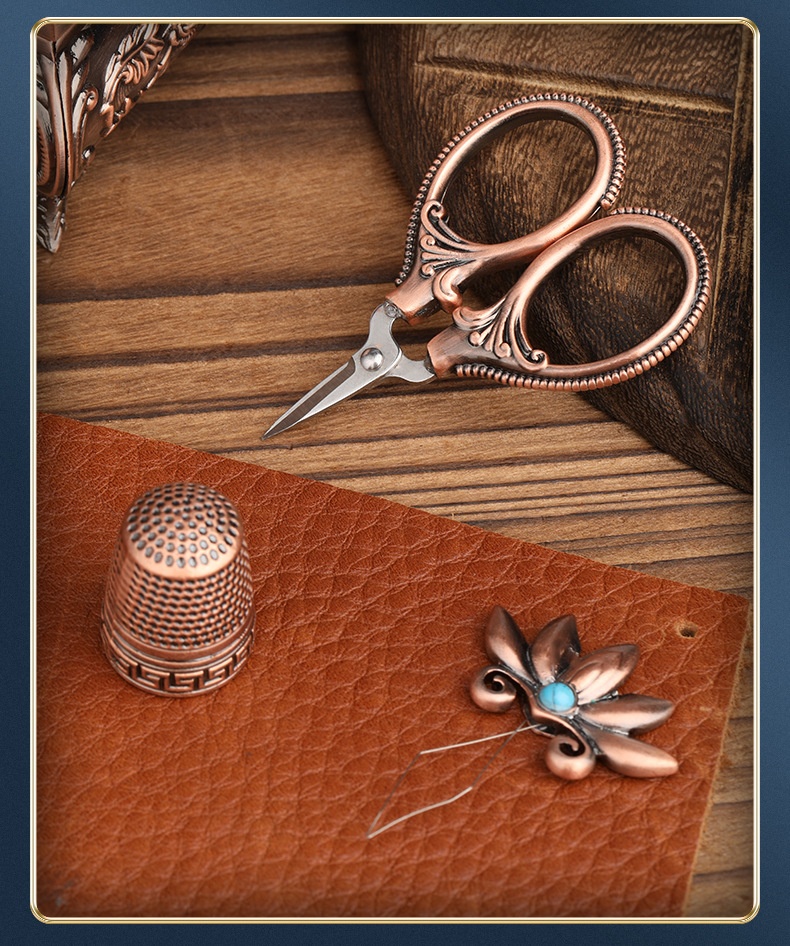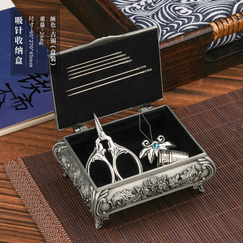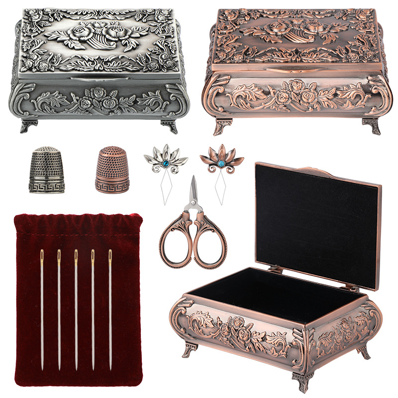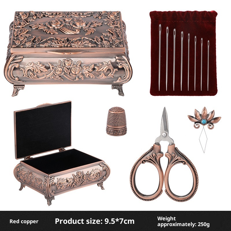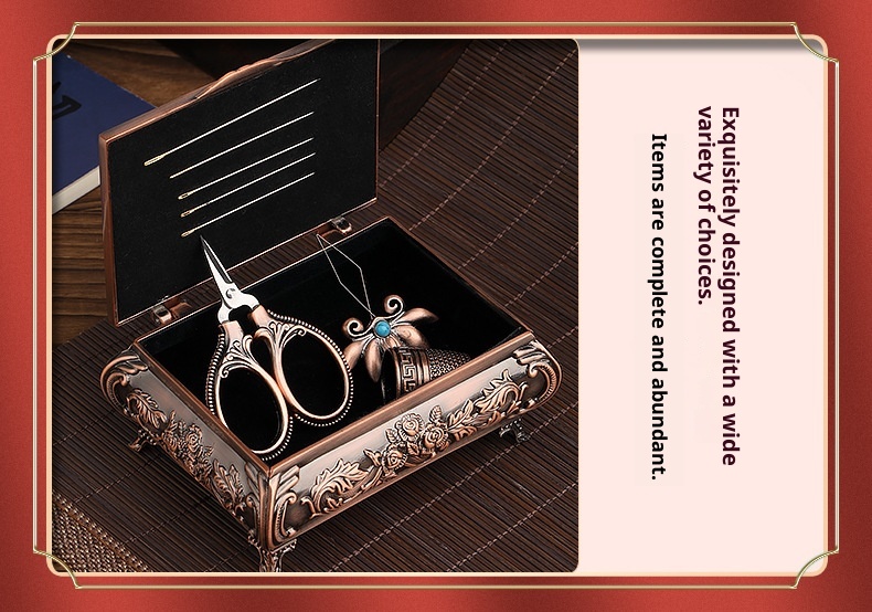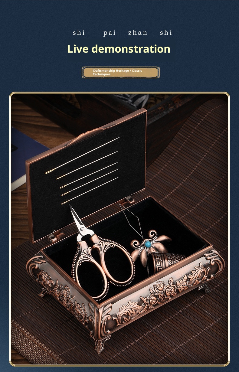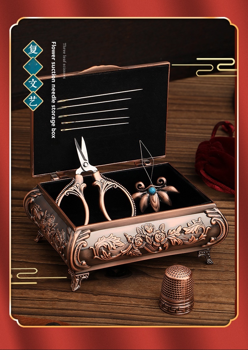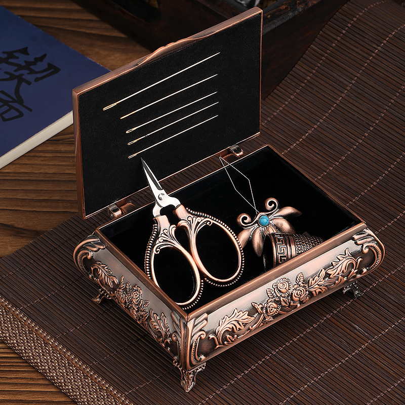 European-style Classical Carved Red Bronze Flower Sucker Pin Storage Box Household Multi-functional Sewing Tool Sewing Kit