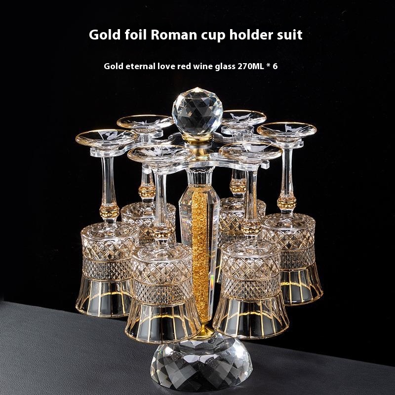 Color: 6 eternal red wine glasses+gold foil Roman cup holder