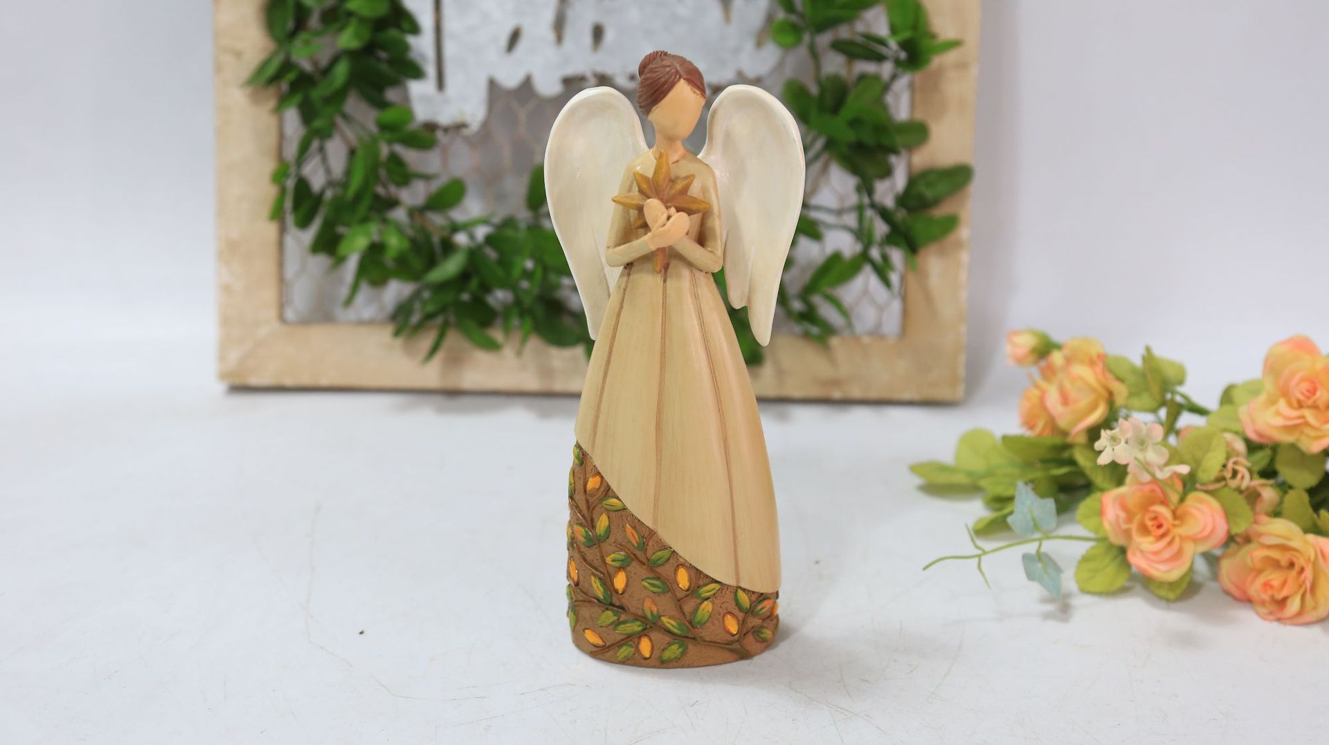 Color: white blessing angel 3 piece set, brown angel holding stars, brown angel holding pigeons, brown angel holding hands together, angel holding love, angel holding flower, angel holding butterfly, green angel holding flower, pink angel holding flower, apricot angel holding Flower, brown blessing angel 3-piece set