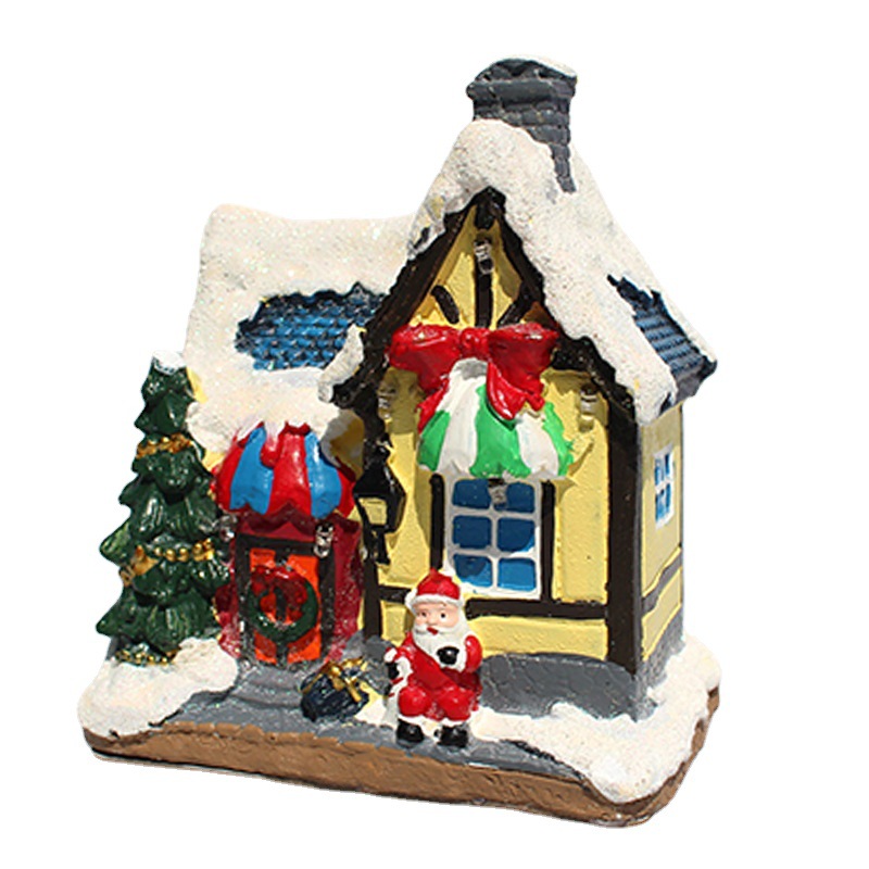 European-style Luminous Cottage House With Decorations Falling Snow And Lantern
