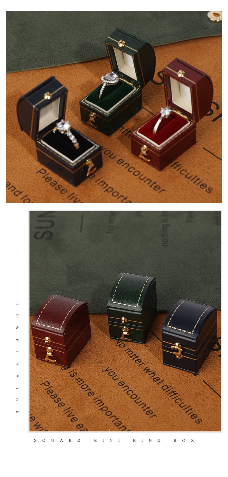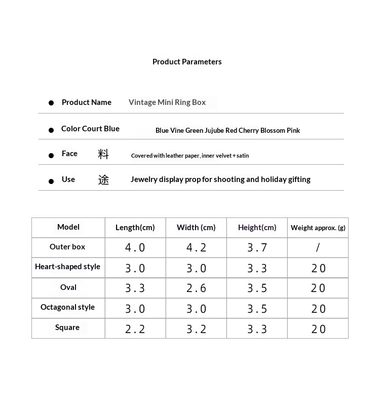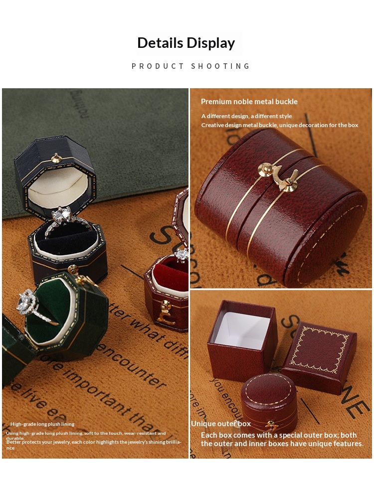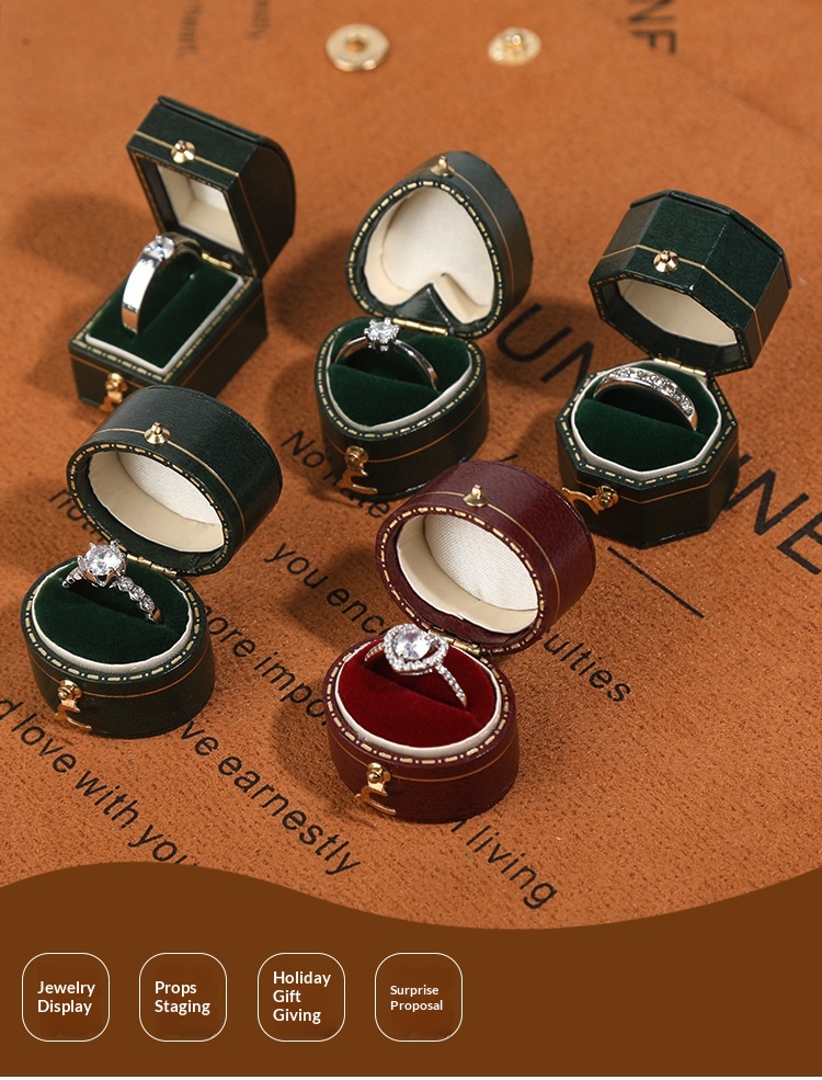 Specifications: Oval ring box (with outer box), Octagonal ring box (with outer box), Heart-shaped ring box (with outer box), Square ring box (with outer box)