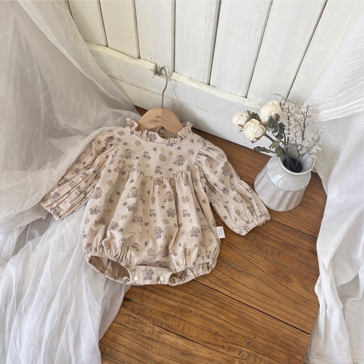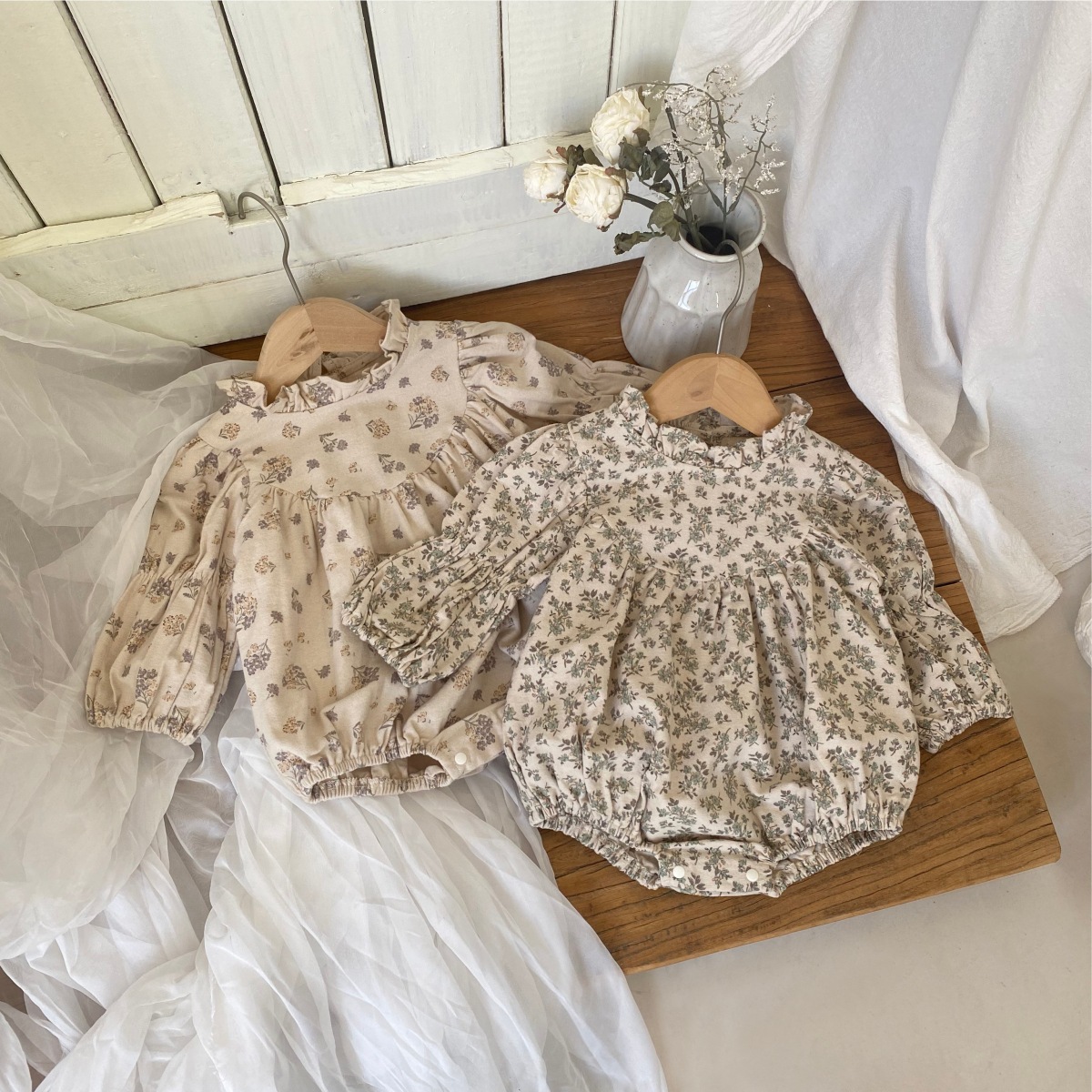 Color: Gray-purple floral print, green floral print
