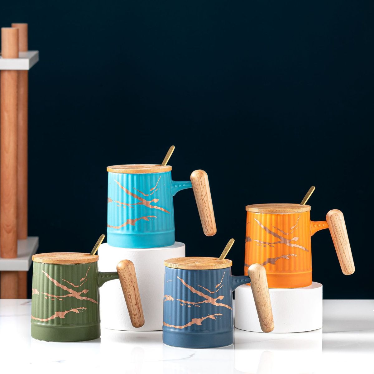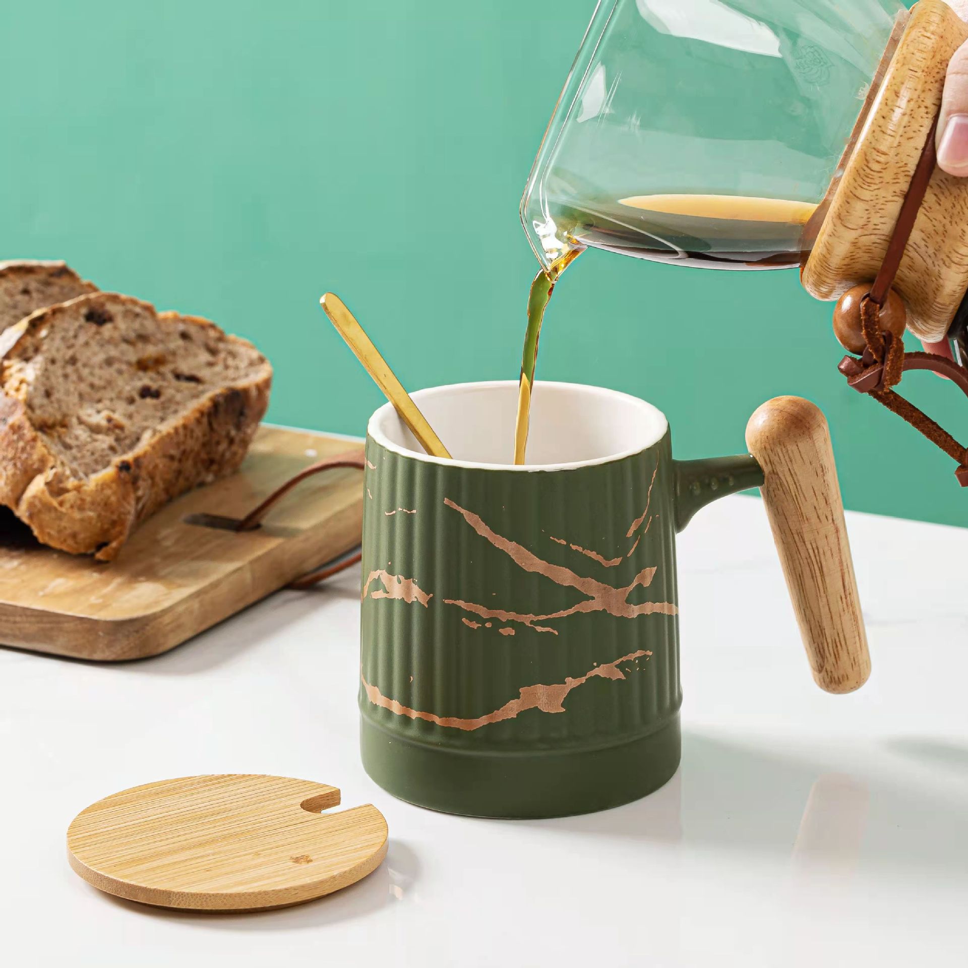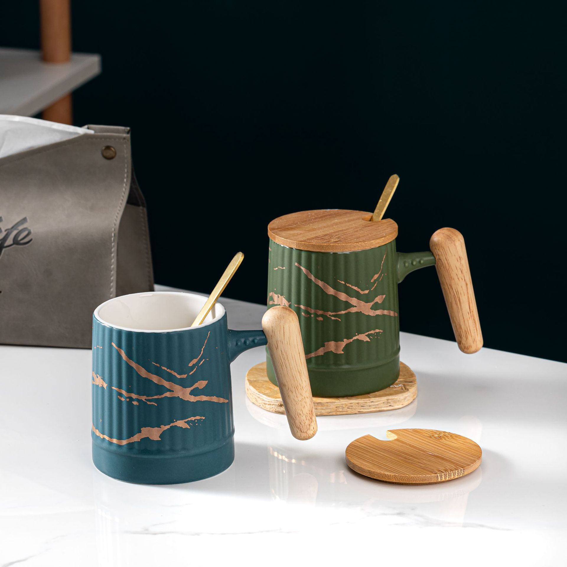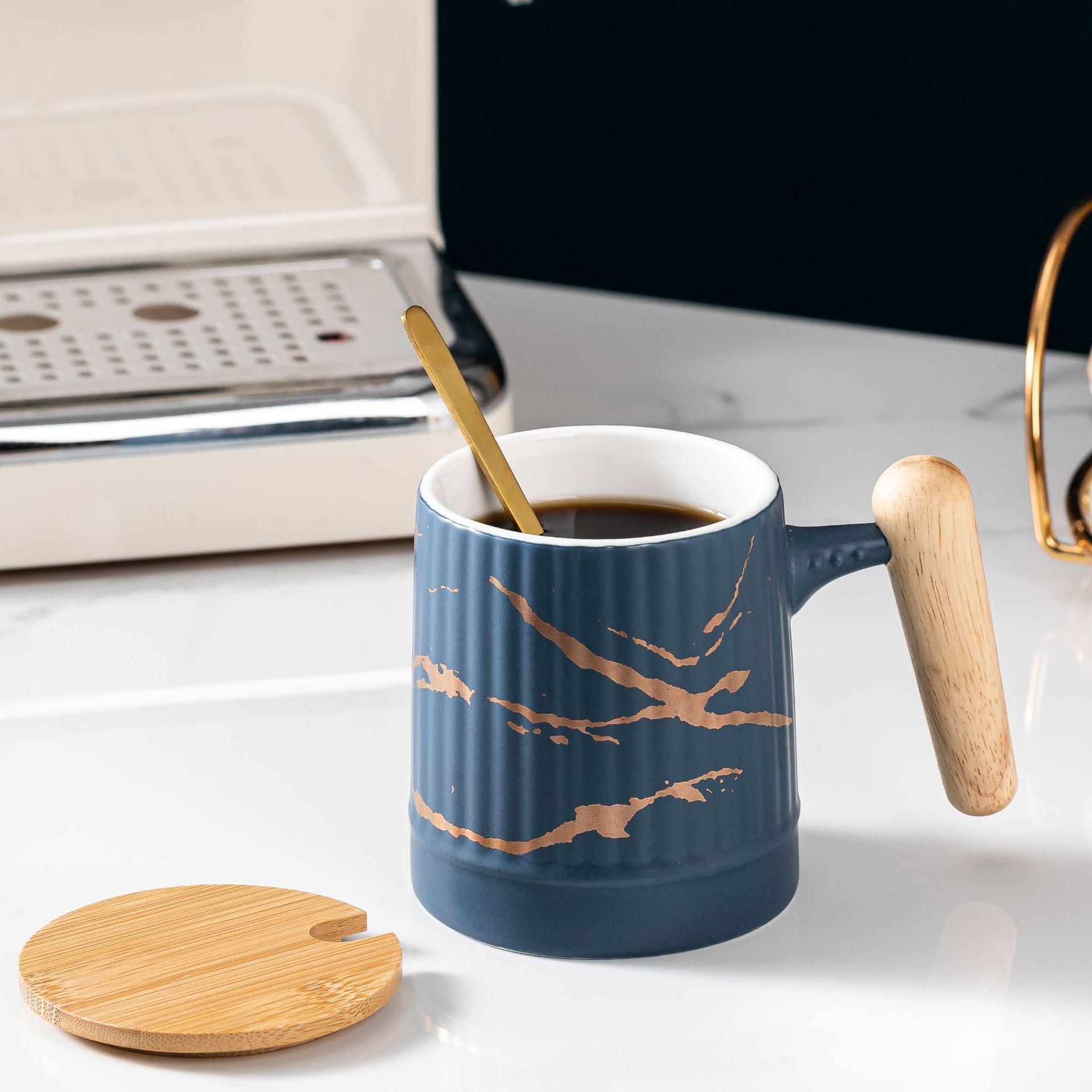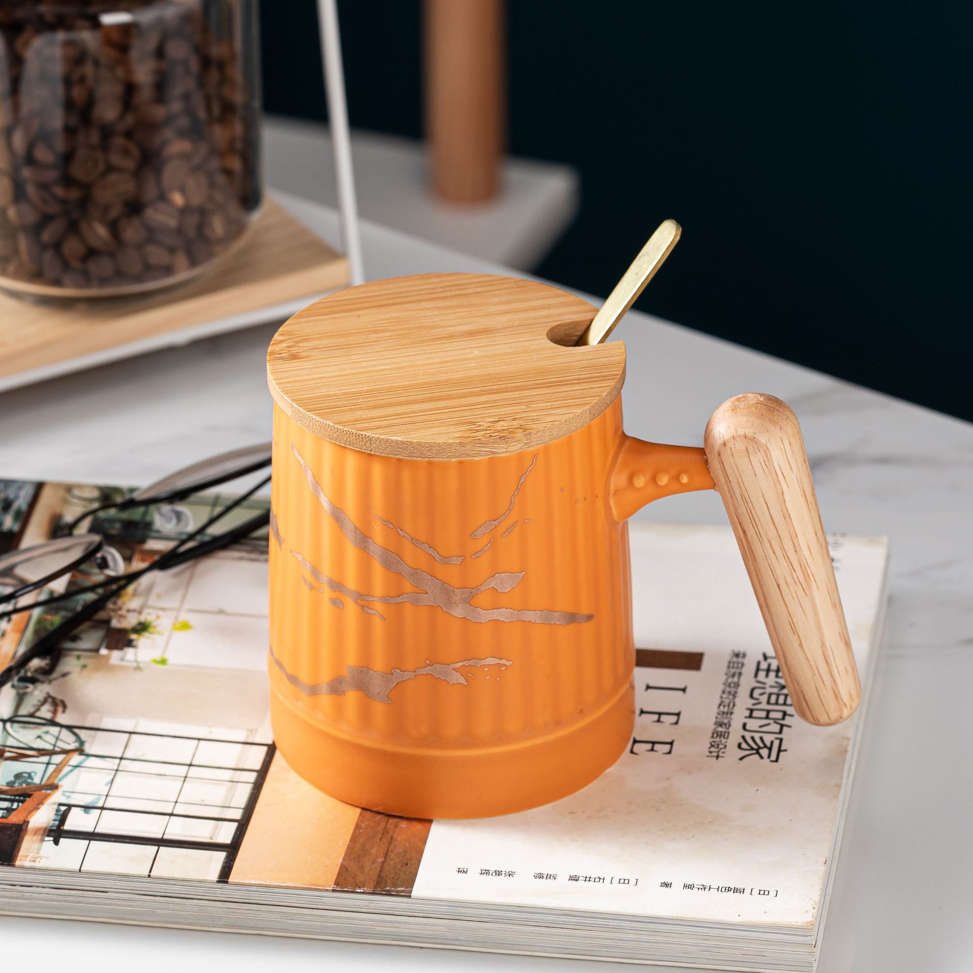 Material: ceramic mug with wooden lid