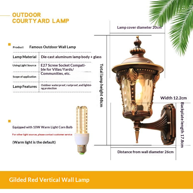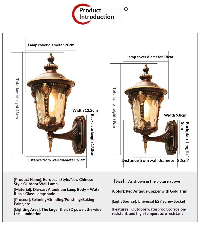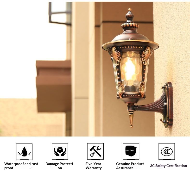 Material: Die-cast aluminum lamp body + water-patterned glass lampshade