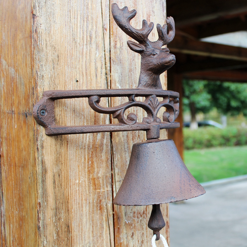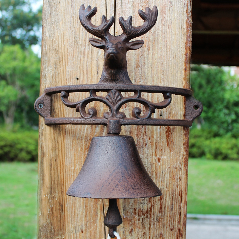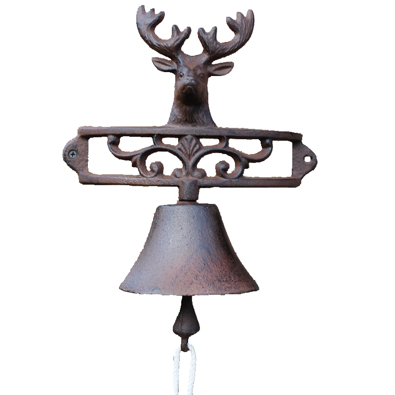 European auspicious deer head retro cast iron doorbell hand bell garden shop decoration wall hanging opening gift