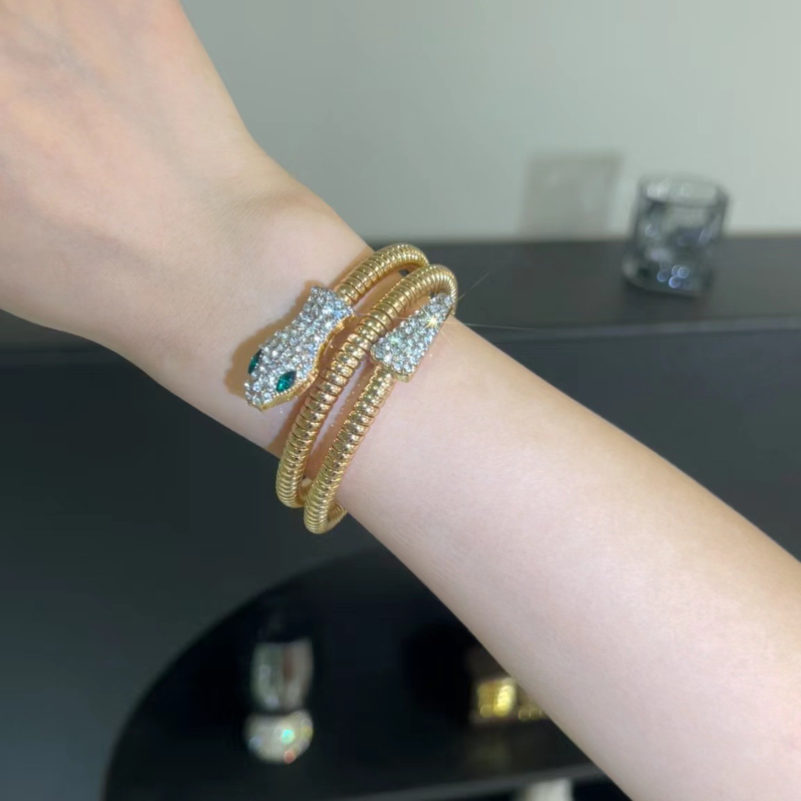 Color: Snake collar-white K color, snake collar-gold color, snake bracelet-white K color, snake bracelet-gold color, four ring bracelet-gold color, four ring bracelet-white K color