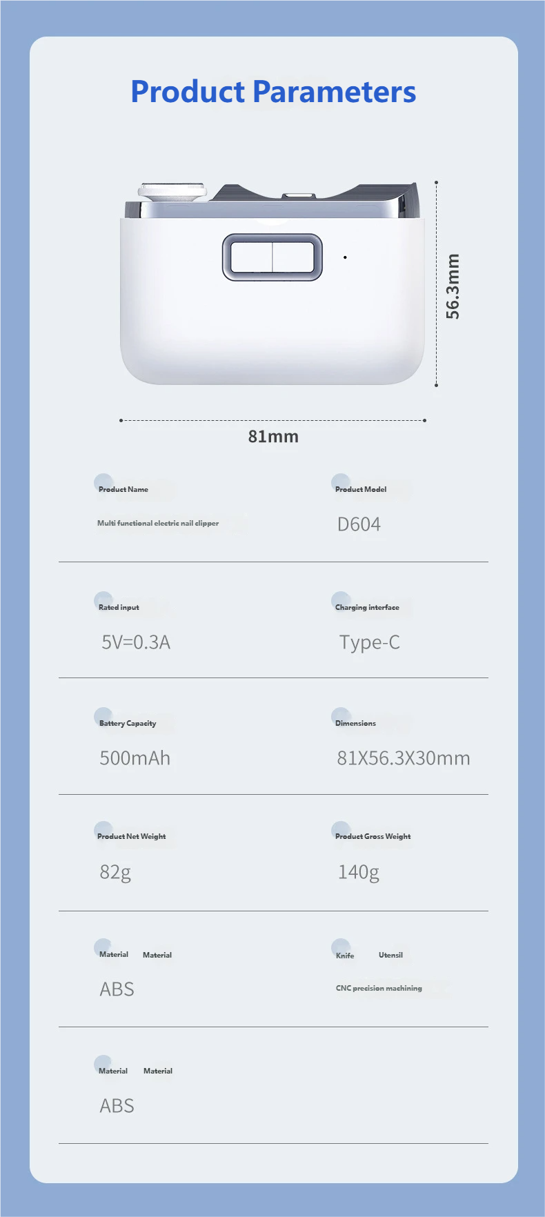 Daily Home Use: Safely trim nails for the elderly and children with easy operation and anti-pinch design.