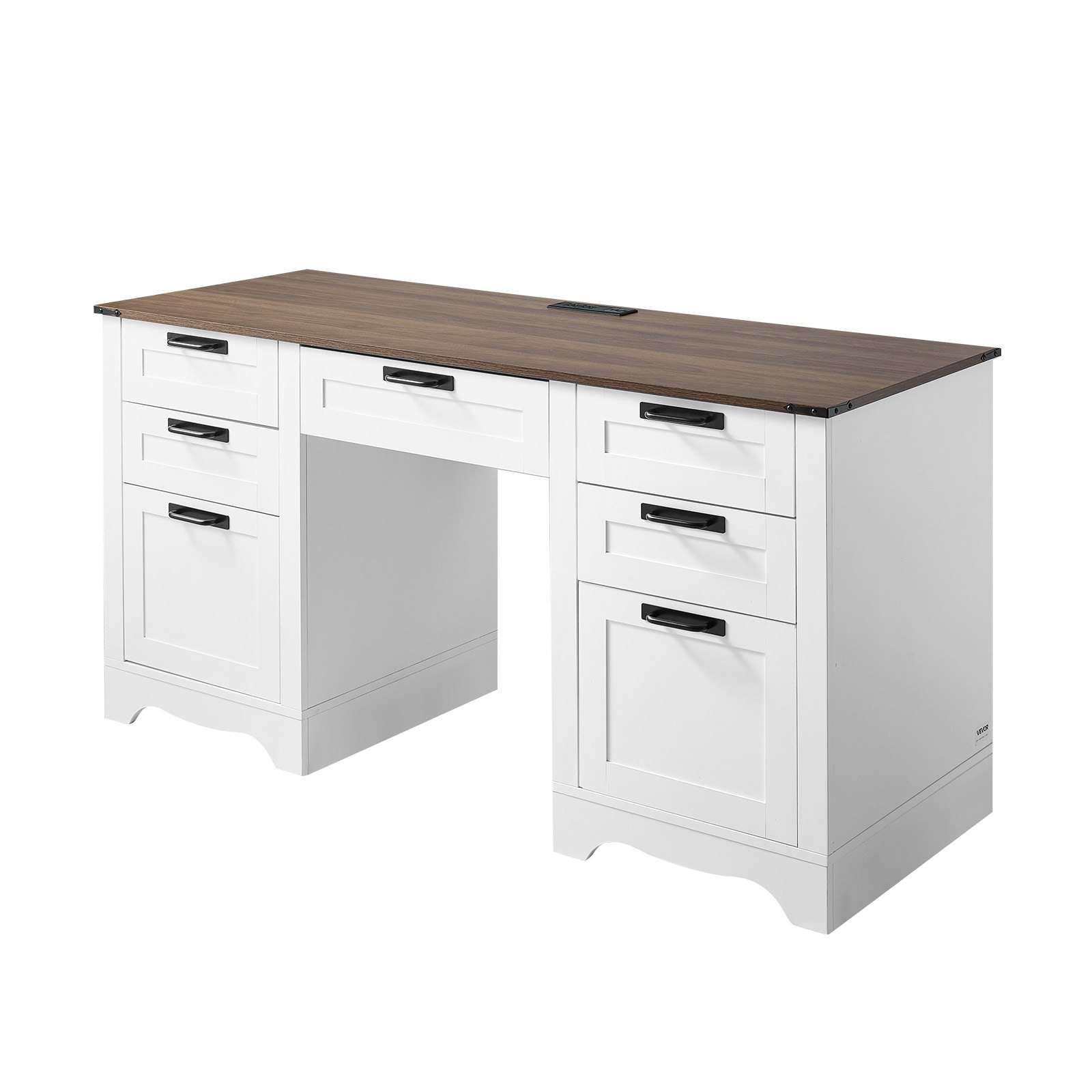 Stunning Farmhouse Desk: Our executive desk features dual bases and drawers with linear trim. The white and walnut finish adds a cozy, rustic farmhouse touch, making it versatile for any decor, ideal for offices, bedrooms, studies, or living rooms