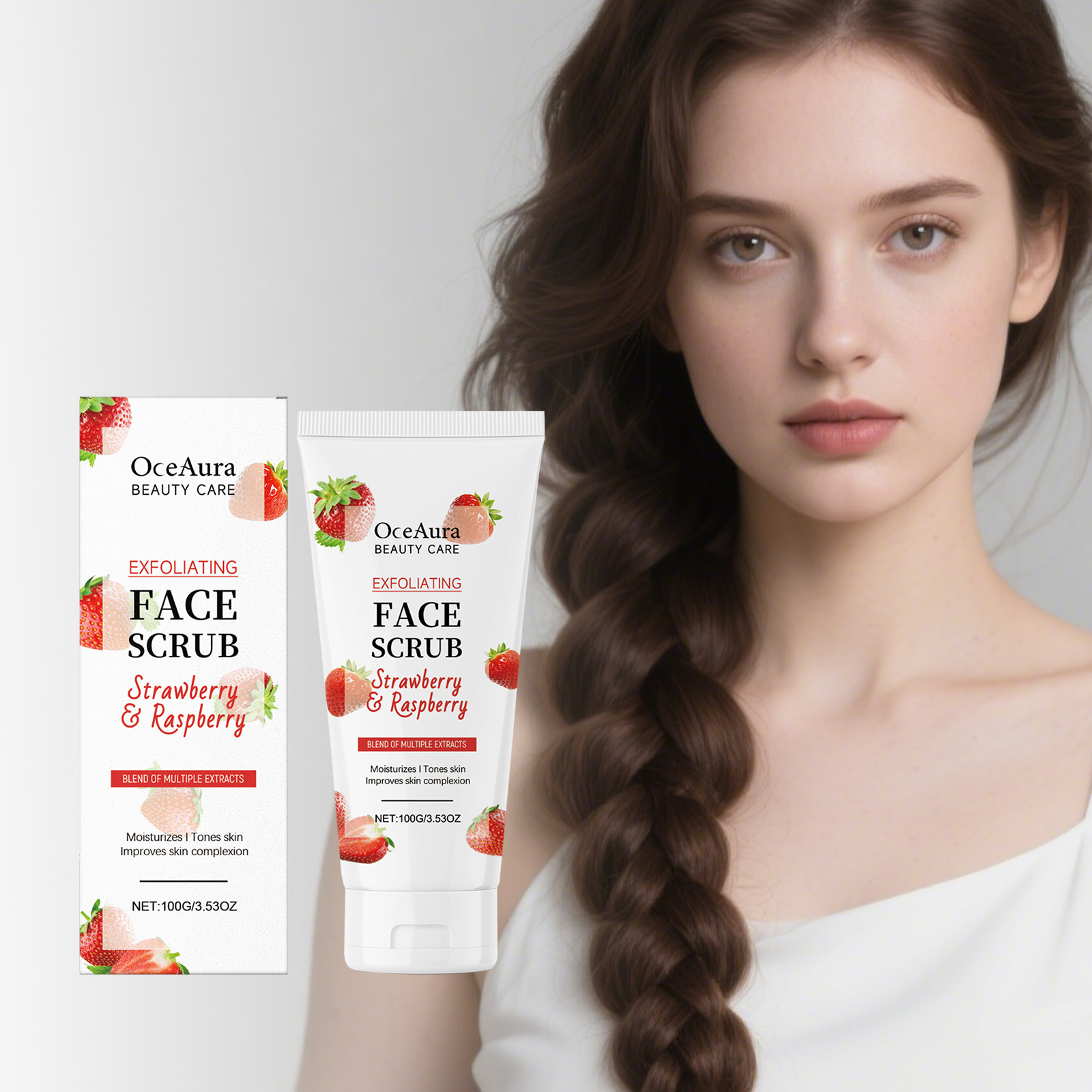 Ingredients: water, glycerin, mineral oil, 1,2- hexanediol, glyceryl stearate, carbomer, arginine, American pecan shell powder, strawberry extract, fructus rubi.