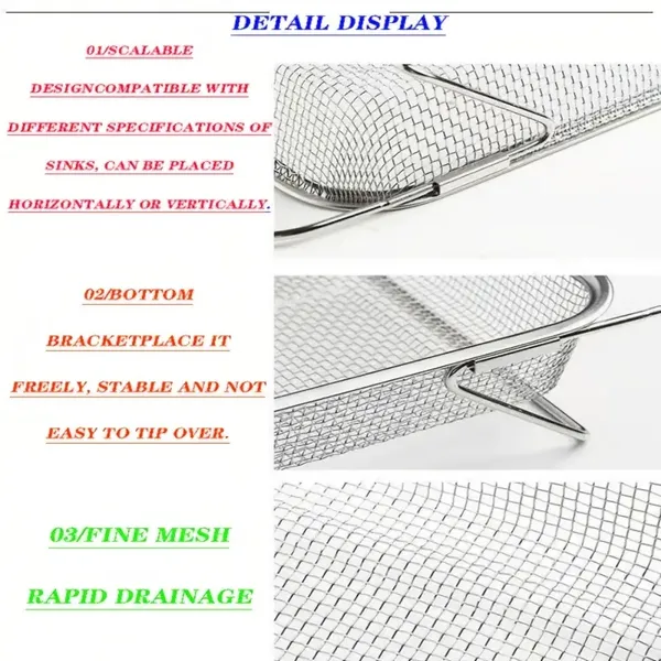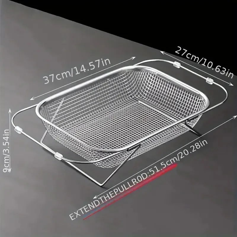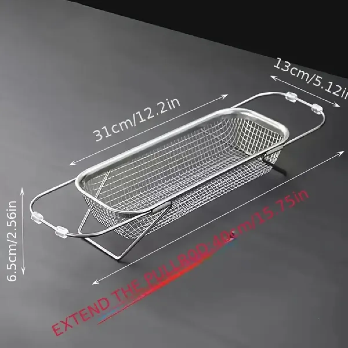 Expandable Stainless Steel Kitchen Sink Drain Basket - Adjustable Dish, Bowl & Cutlery Washing Rack With Space-Saving Design, Drains Forks, Knives, Fruits & Vegetables, Durable & Easy-Clean